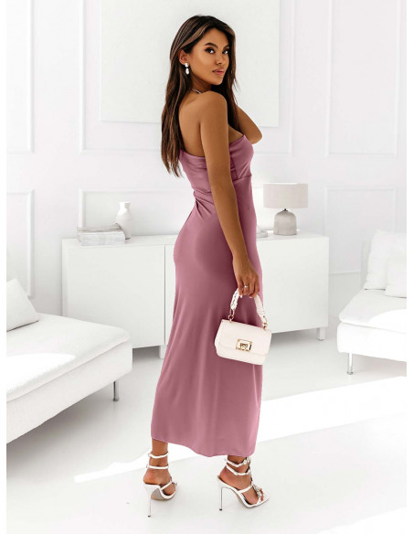 Całość dodatkowo zdobi rozcięcie na nodze, które nadaje sukience zmysłowości.