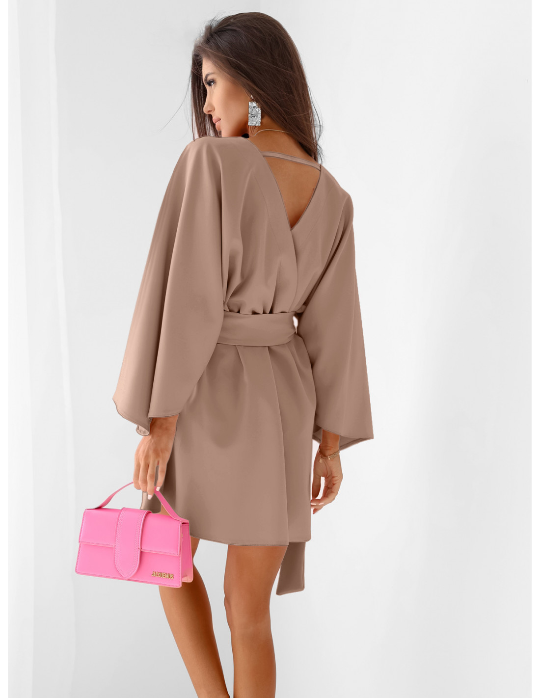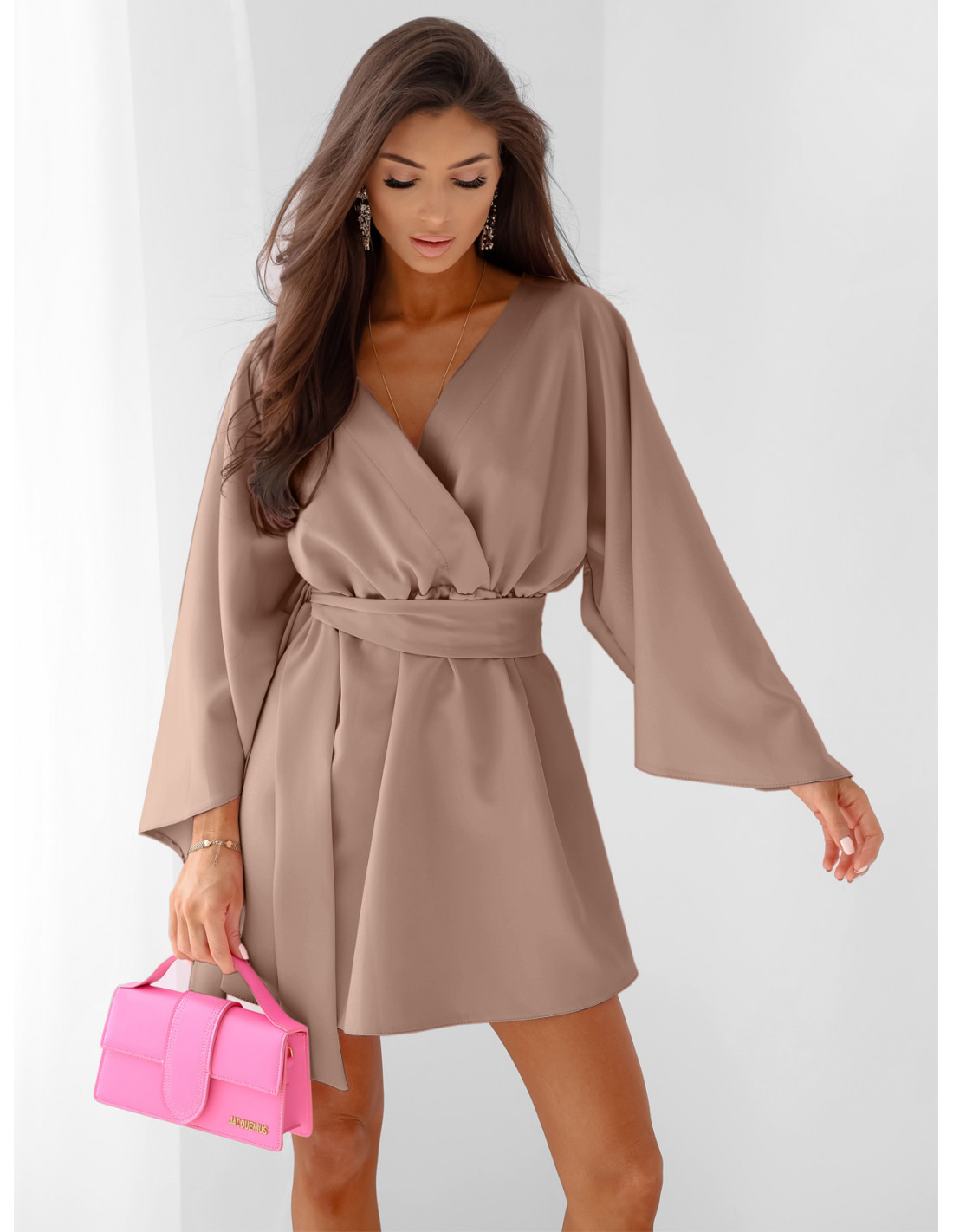 WP sukienka mini z przekładanym dekoltem - mocha mousse