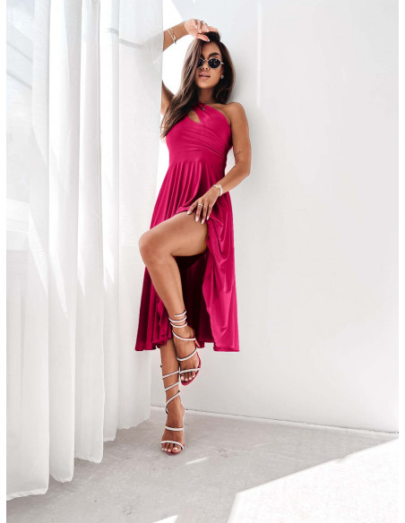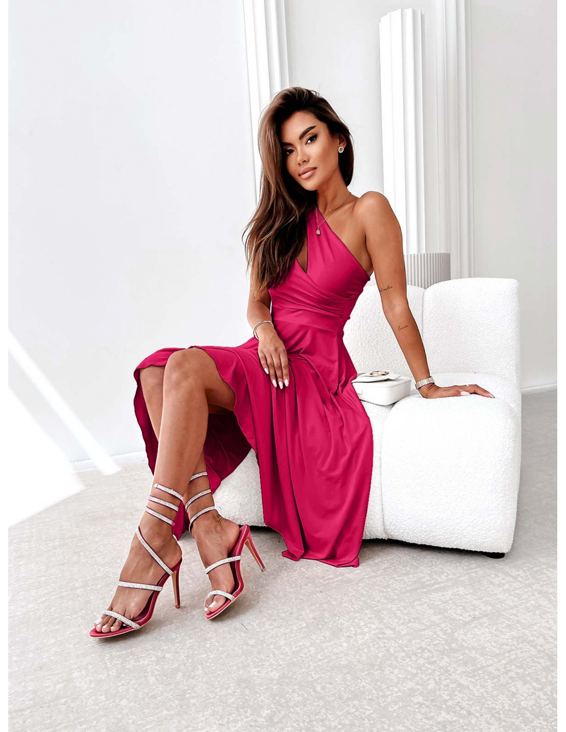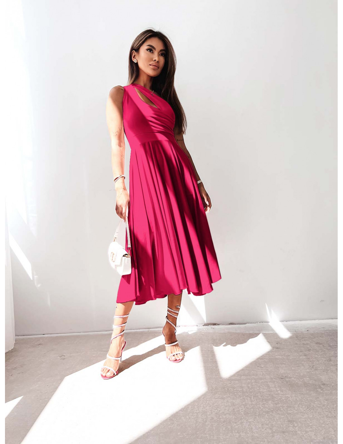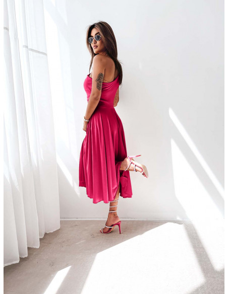 WP Sukienka midi na jedno ramię - fuksjowa