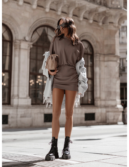 Sukienka w kolorze mocha mousse łatwo wpisuje się w każdą kapsułową garderobę.