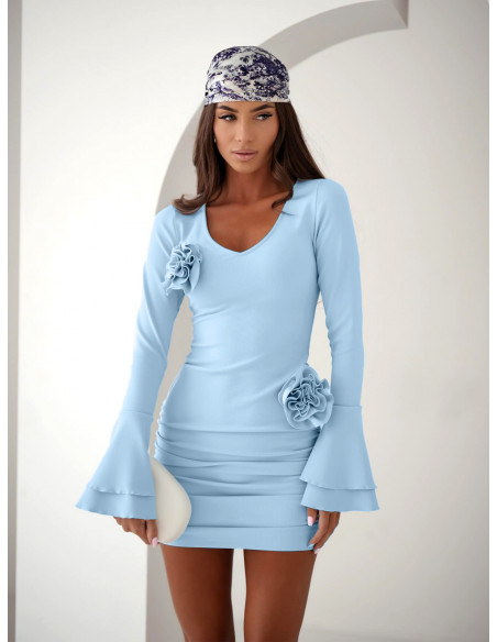 Ta błękitna sukienka mini to idealna propozycja dla kobiet, które kochają modę podkreślającą sylwetkę i aktualne trendy.