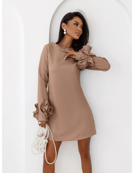 Sukienka trapezowa z ozdobnymi rękawami MANITA - cappuccino