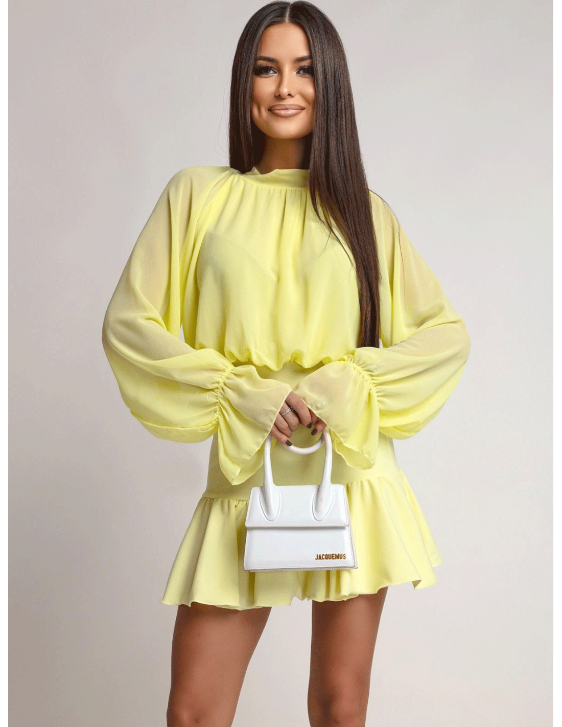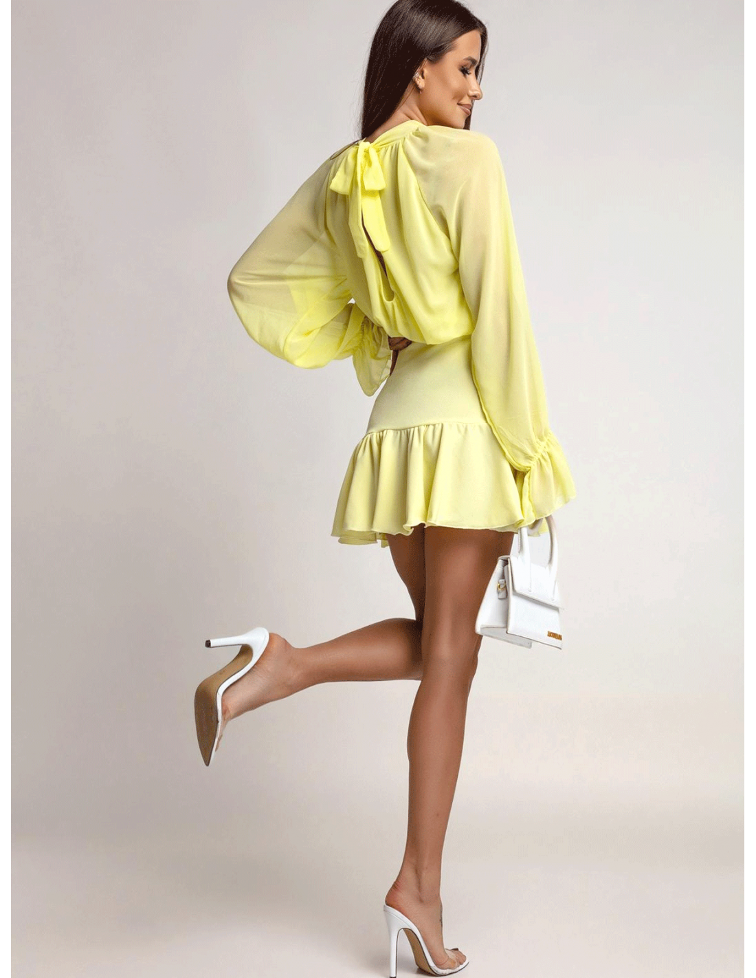 Sukienka mini z falbaną w kolorze cytrynowym to esencja świeżości i kobiecej energii.