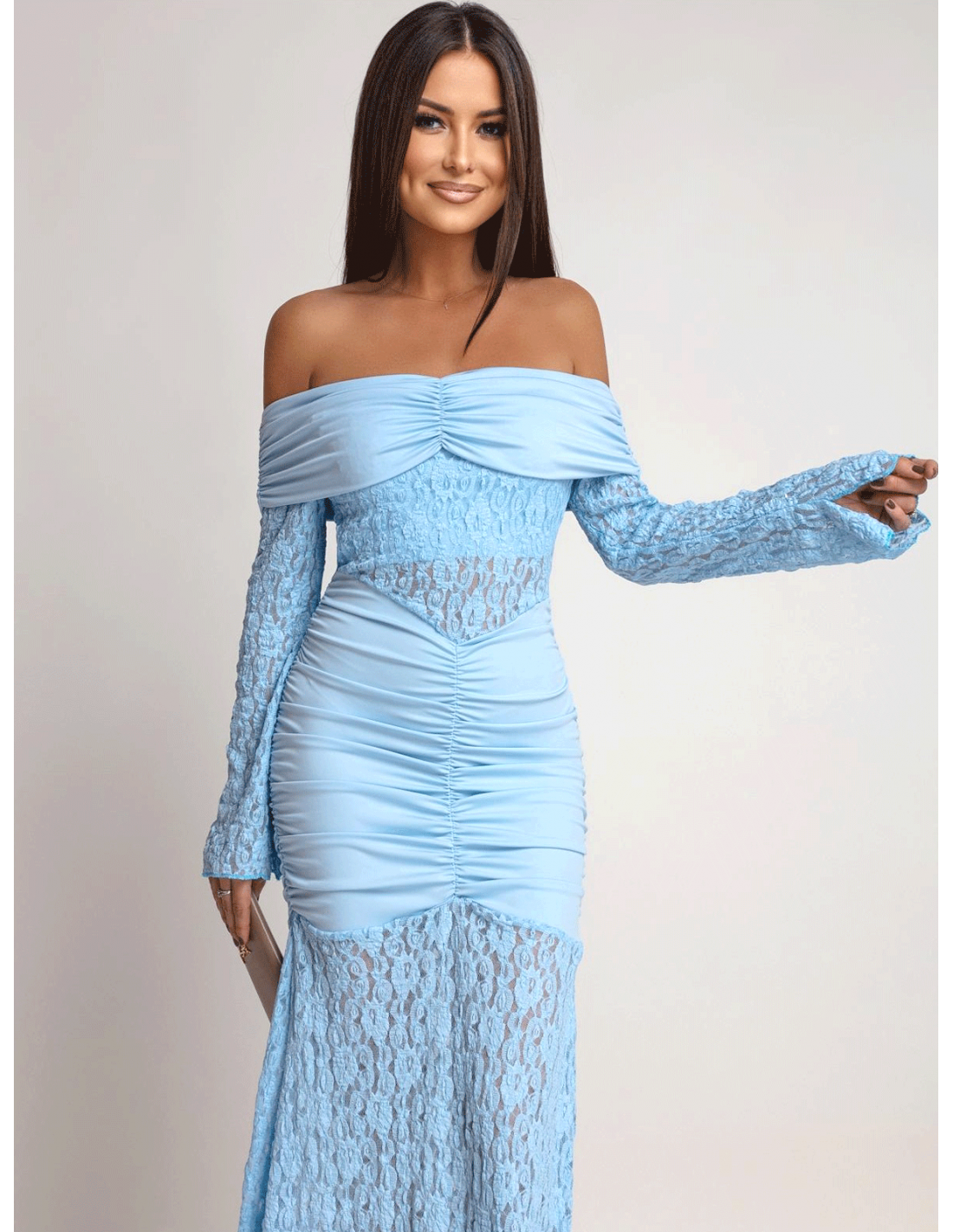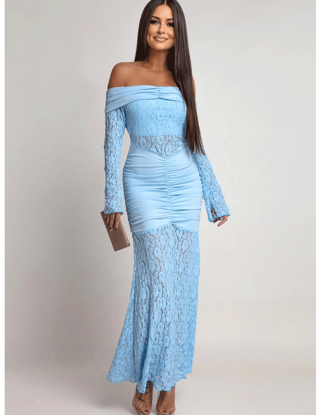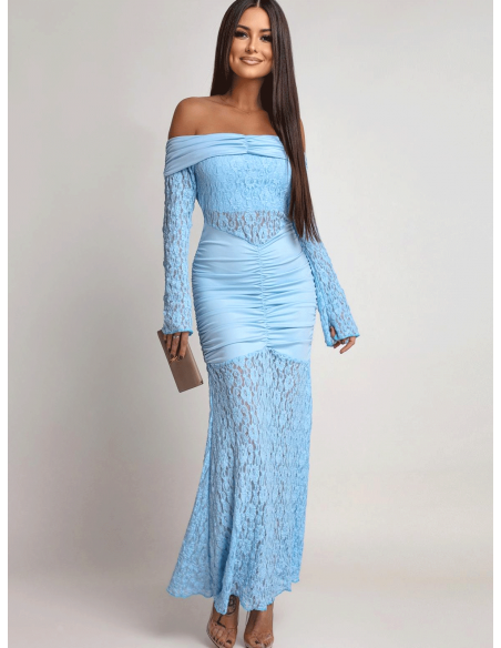 Sukienka maxi z odkrytymi ramionami SANTORIA - błękitna