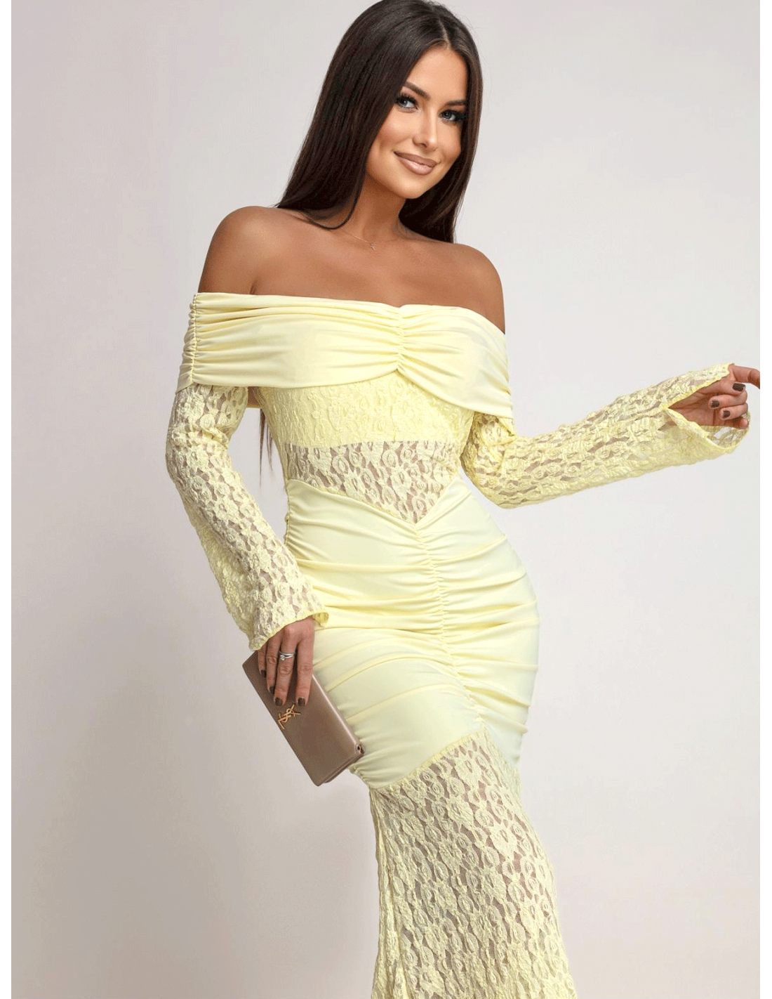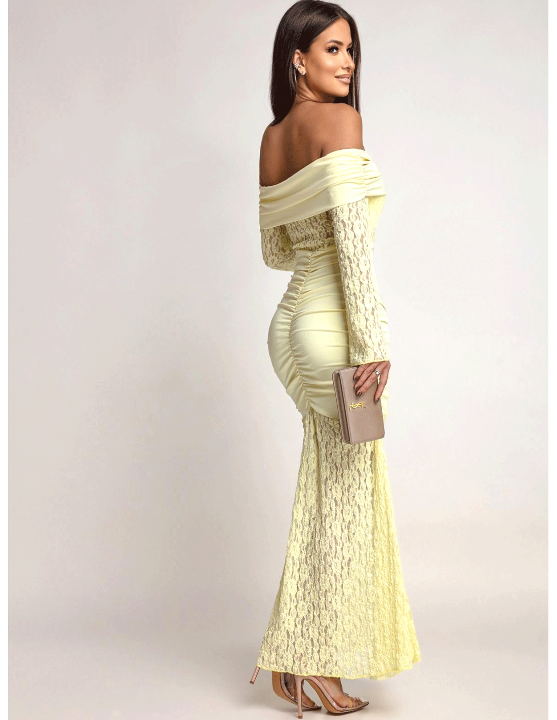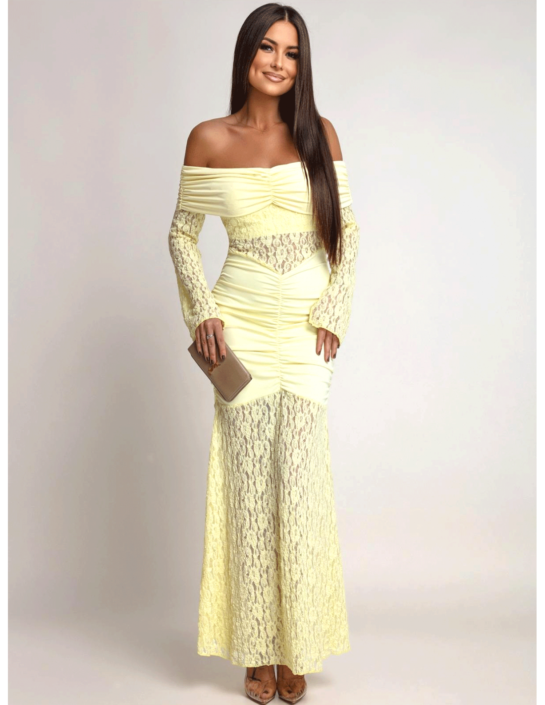 Sukienka maxi z odkrytymi ramionami SANTORIA - cytrynowa