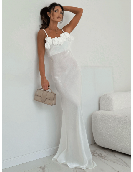 Wiskozowa sukienka maxi z różami PAITYN - biała