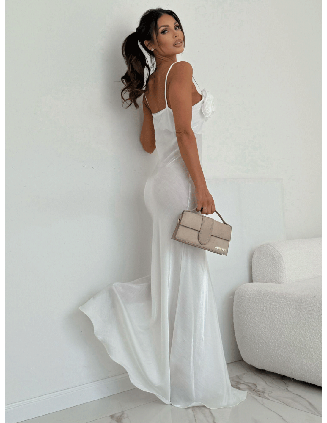 Zestaw ją ze szpilkami i minimalistyczną kopertówką, aby stworzyć zjawiskowy look na wesele lub elegancką kolację.