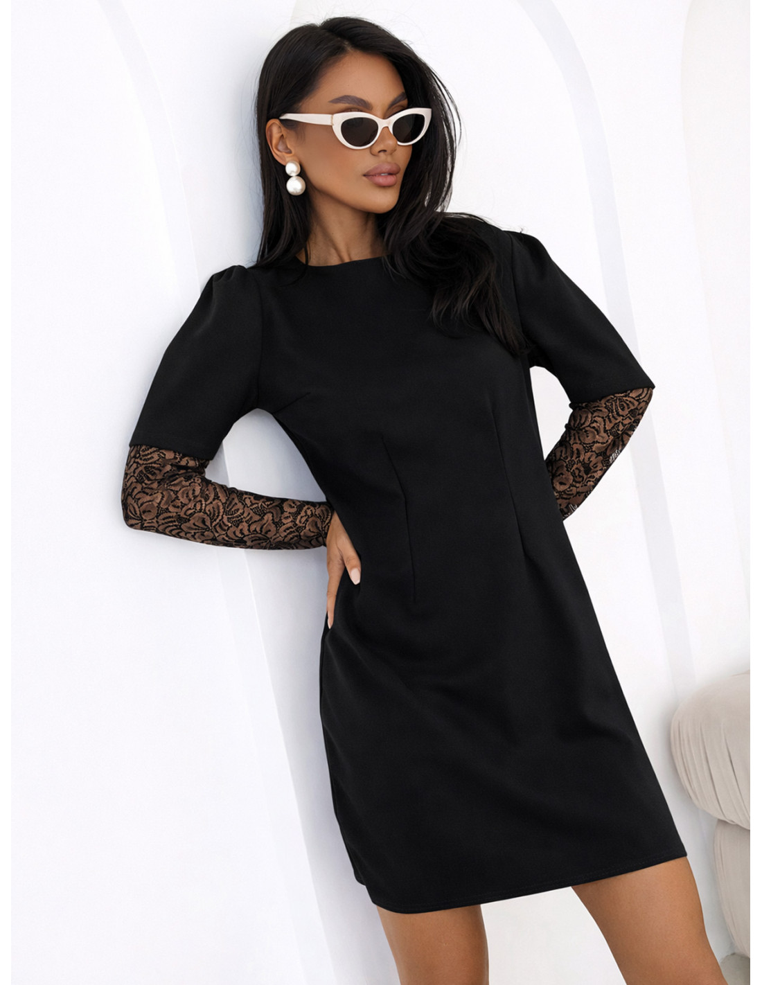 Sukienka mini z koronkowymi rękawami ALEDA - czarna