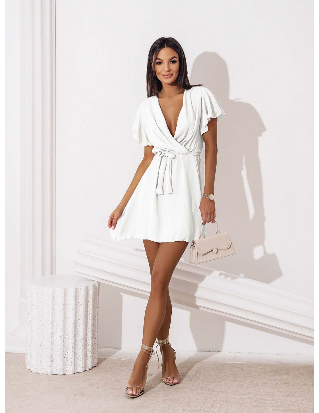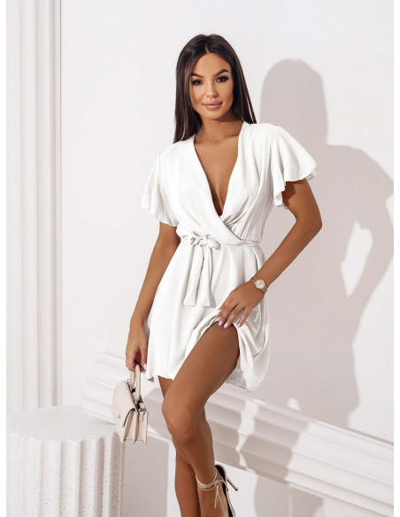 Zwiewna sukienka z kopertowym dekoltem ALICJA - biała