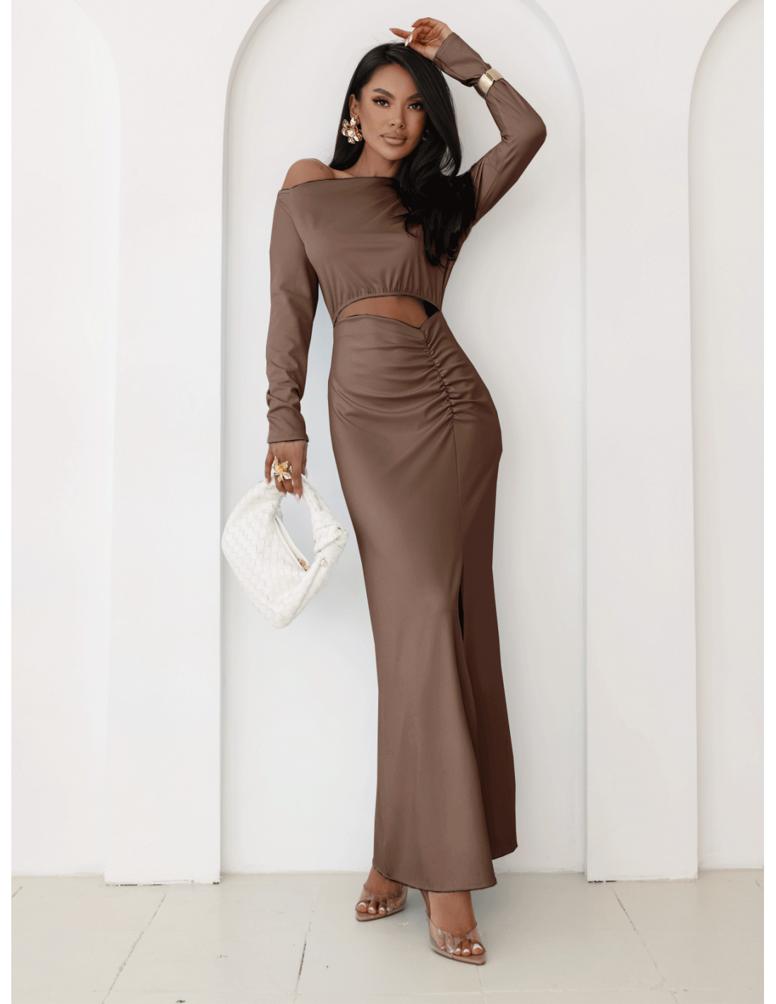 Sukienka maxi w kolorze cappuccino to kwintesencja subtelnej kobiecości.