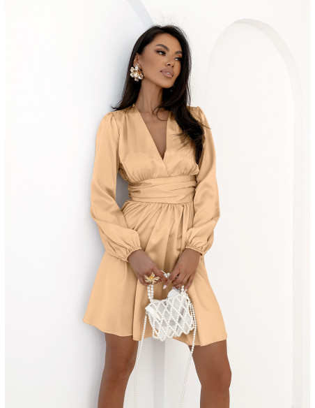 Rozkloszowana satynowa sukienka mini ALDANA - złota