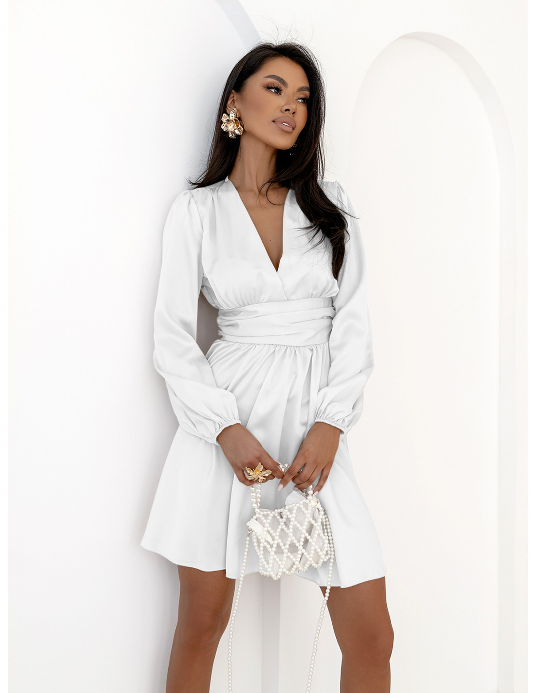 Rozkloszowana satynowa sukienka mini ALDANA - biała