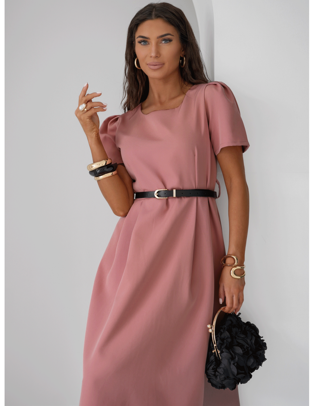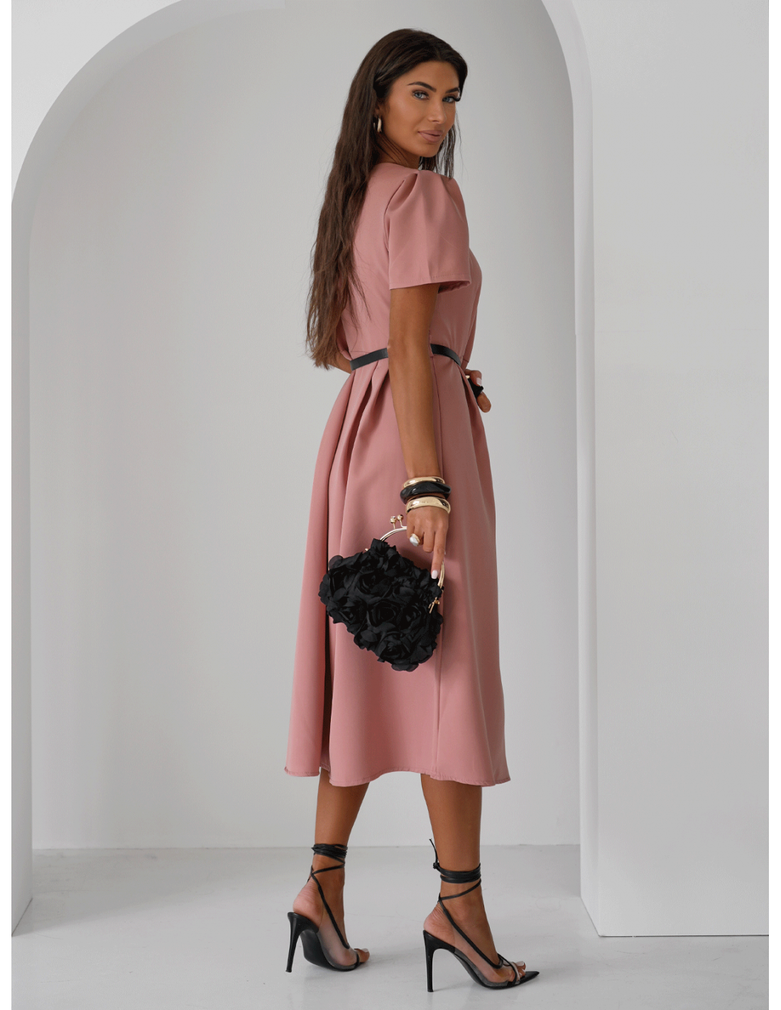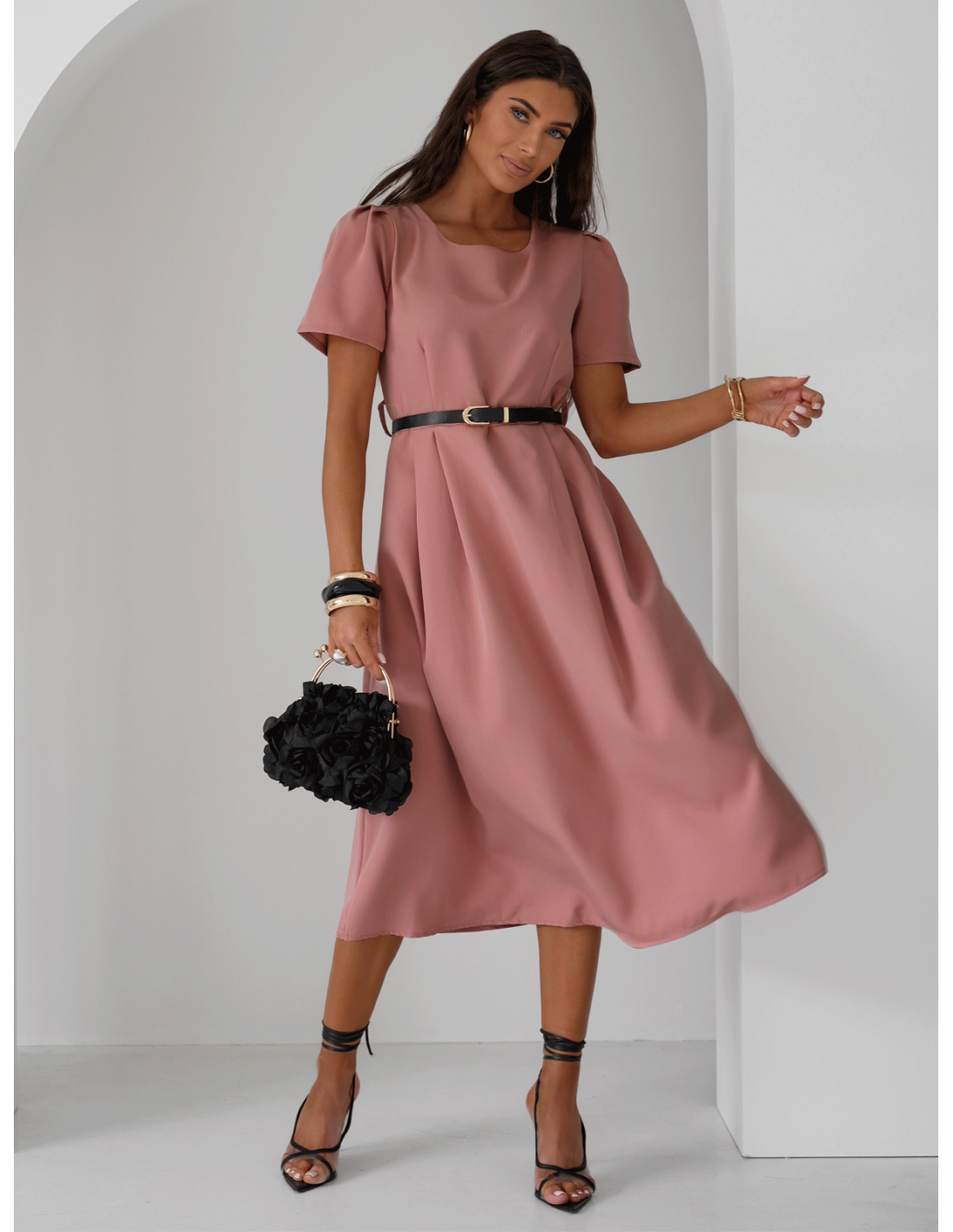 Elegancka sukienka midi z paskiem KERRIE - brudny róż