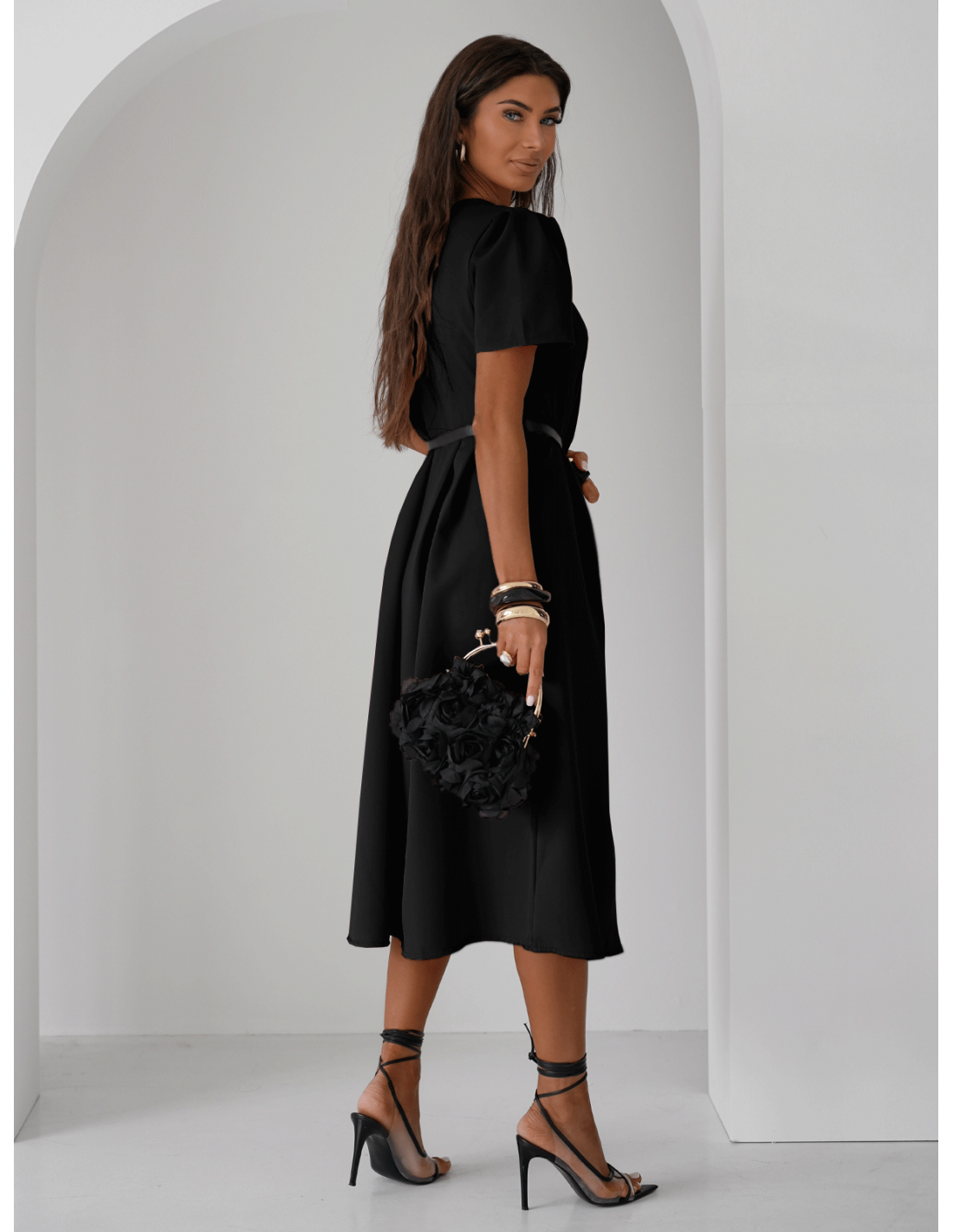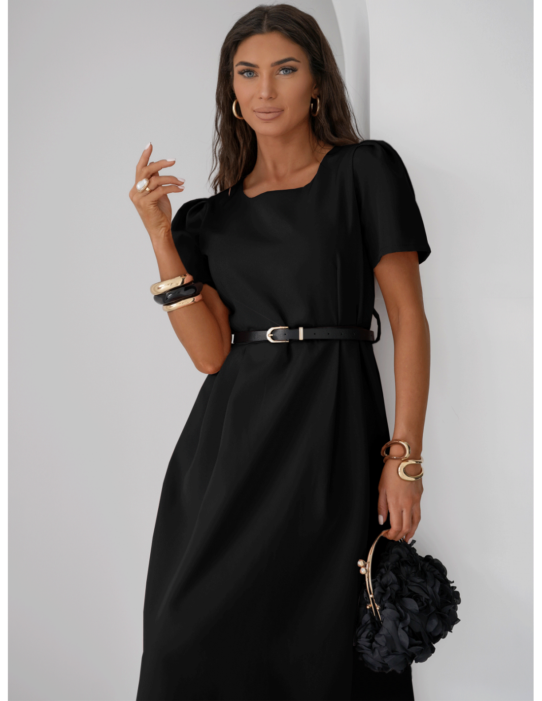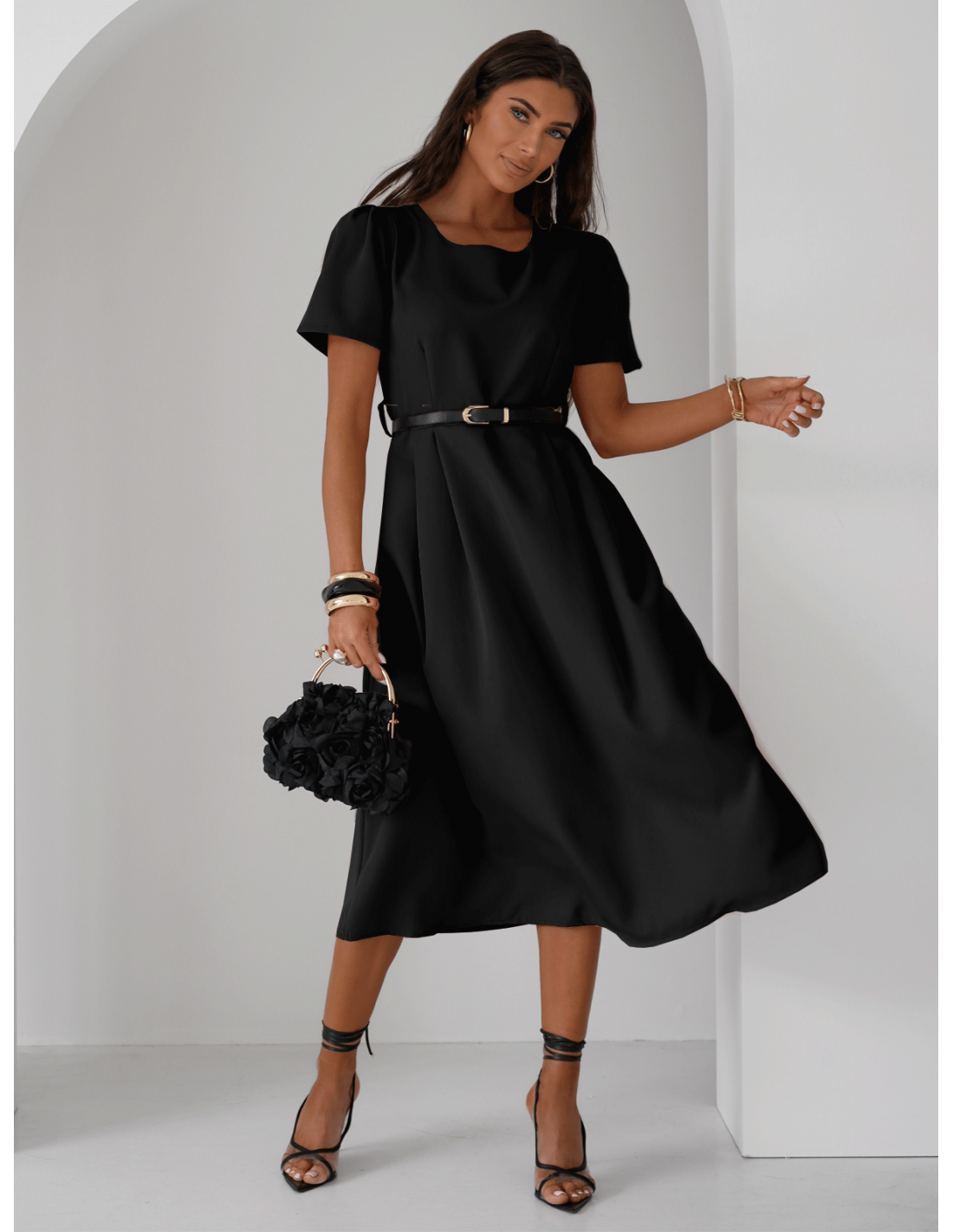 Elegancka sukienka midi z paskiem KERRIE - czarna