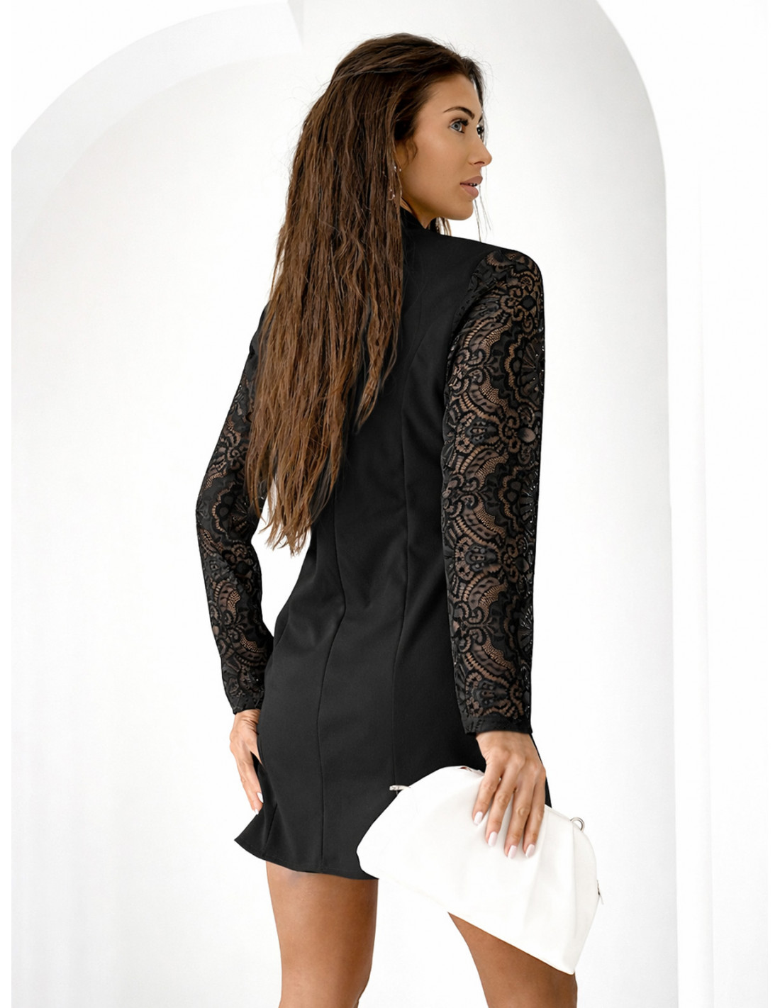 Sukienka mini z koronkowymi rękawami SAILI - czarna