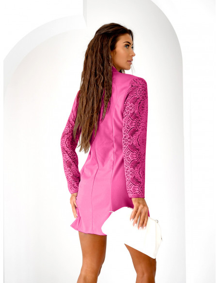 Sukienka mini z koronkowymi rękawami SAILI - fuksjowa