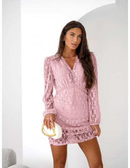 Koronkowa sukienka mini z dekoltem V TARA - brudny róż