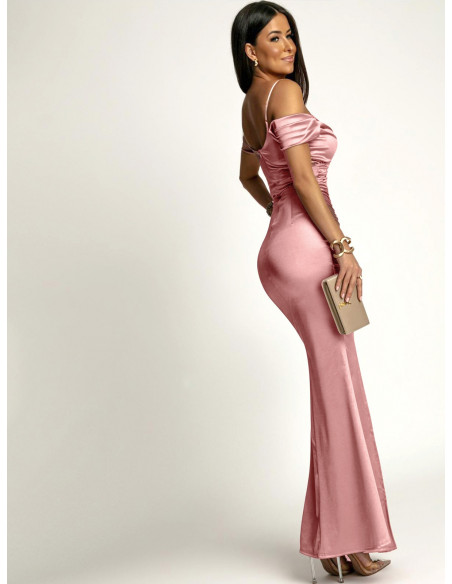 Satynowa sukienka na ramiączkach MAREN - brudny róż