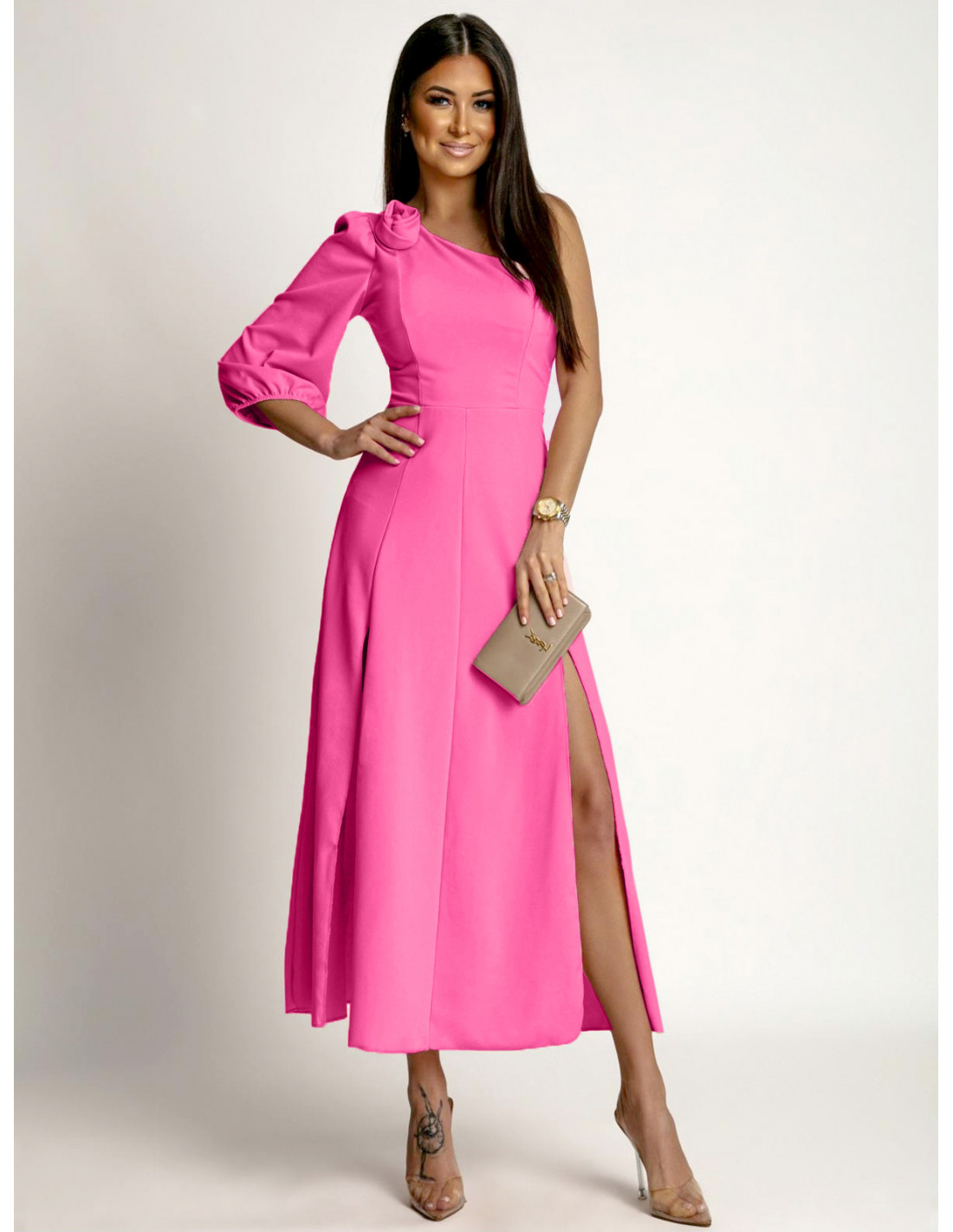 Ta różowa asymetryczna sukienka maxi na jedno ramię to kwintesencja elegancji i kobiecego stylu.