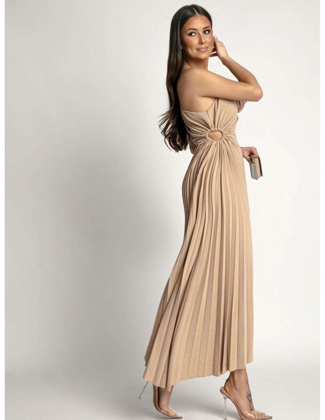 Ta wyjątkowa sukienka plisowana w kolorze cappuccino to propozycja dla kobiet, które cenią elegancję w nowoczesnym wydaniu.