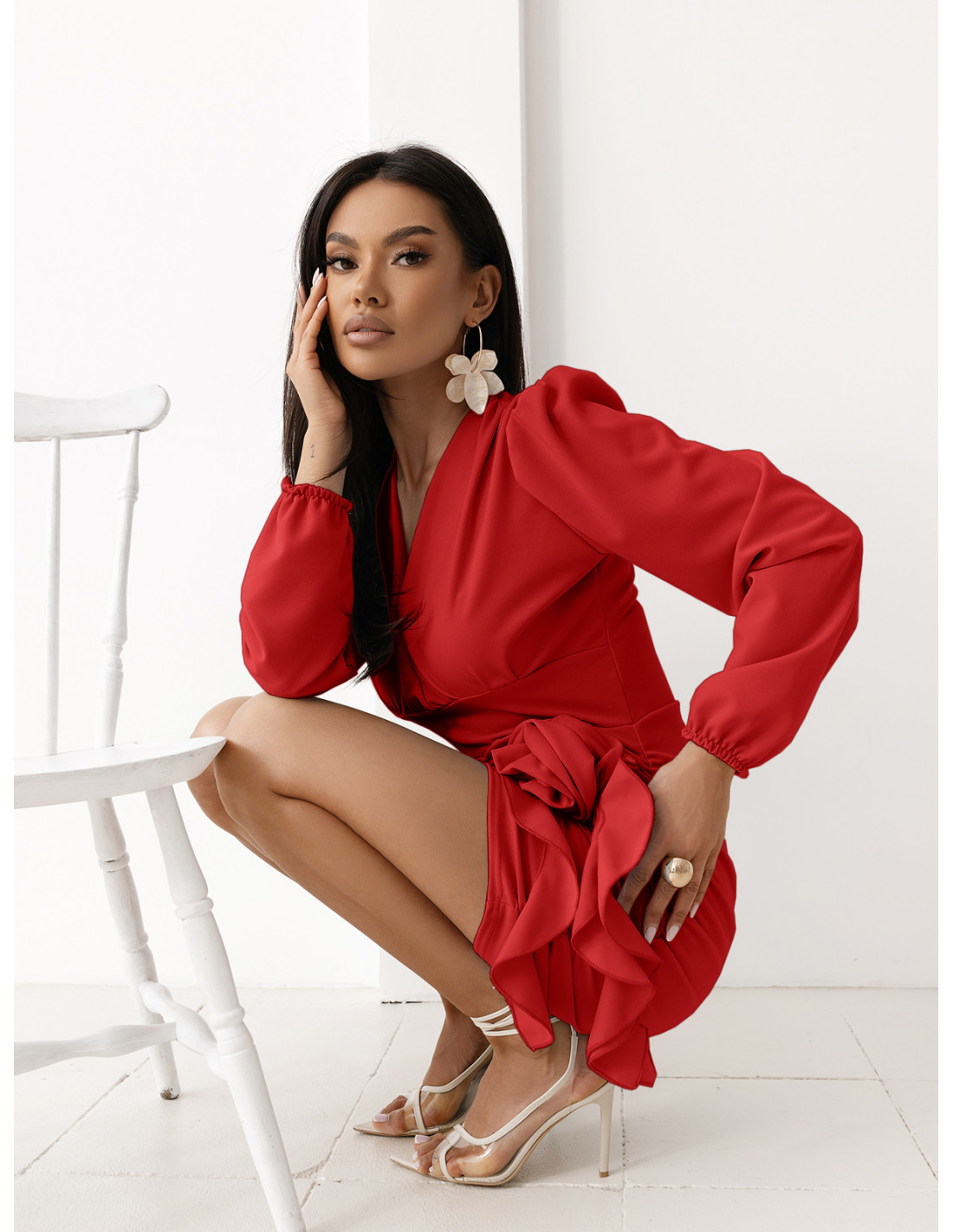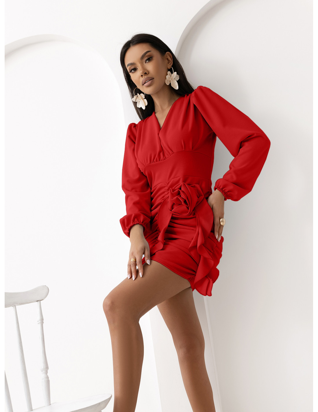 Marszczona sukienka z ozdobnym kwiatem HASJA - czerwona