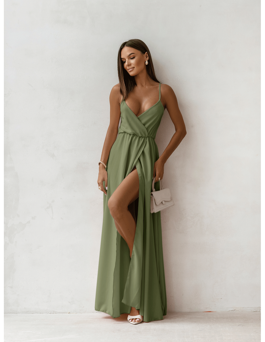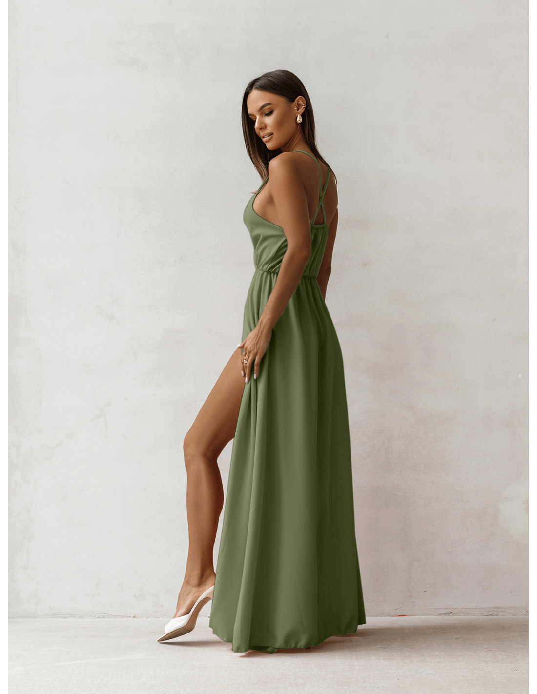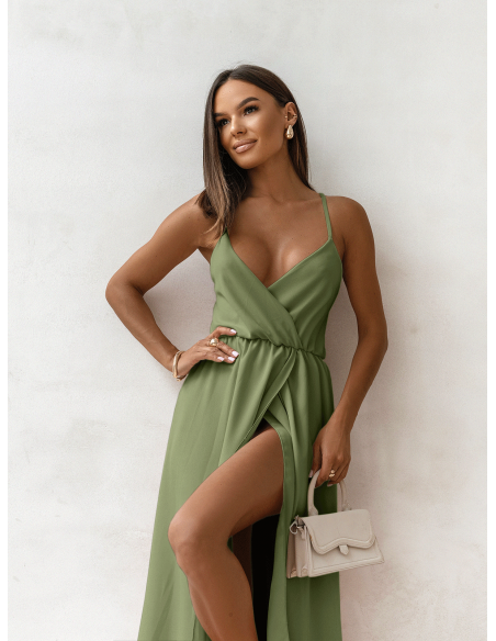 WP Sukienka maxi na ramiączkach - szałwiowa