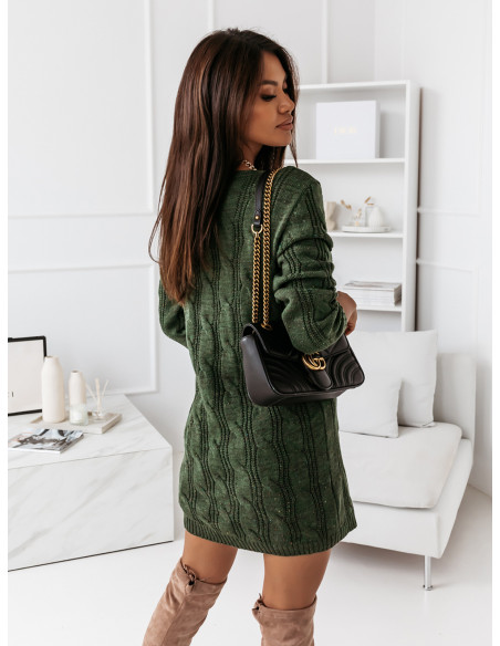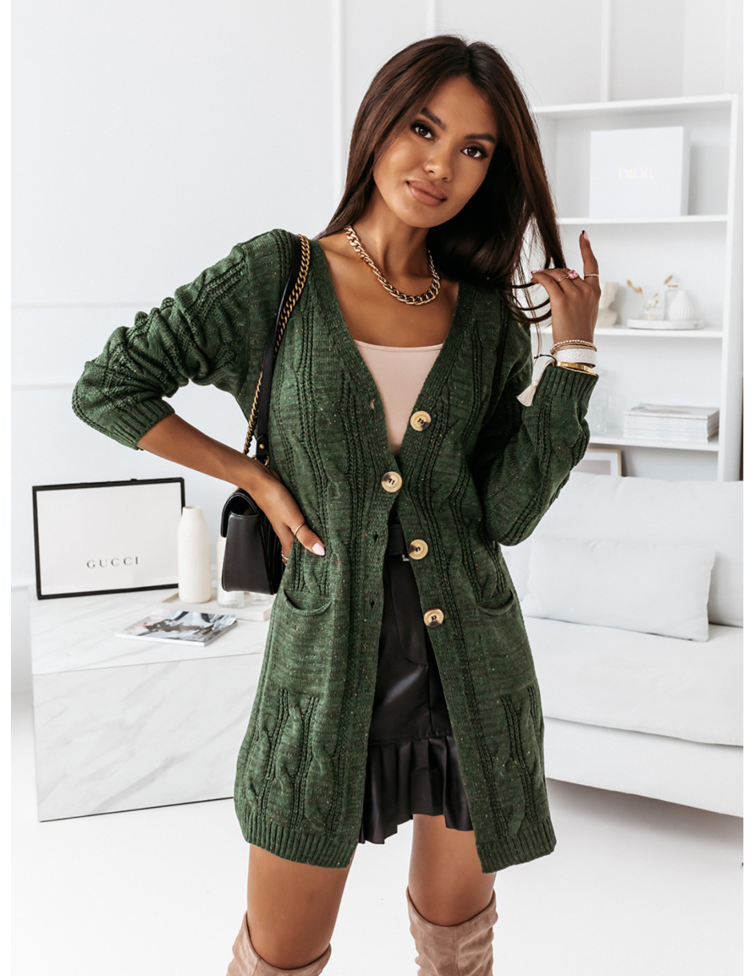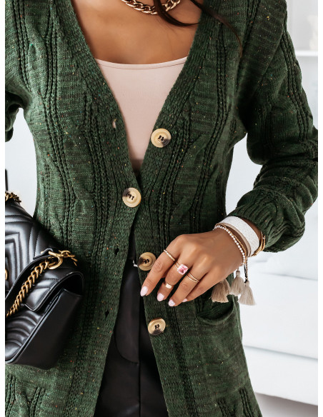 Długi sweter z guzikami SALVANA - butelkowa zieleń