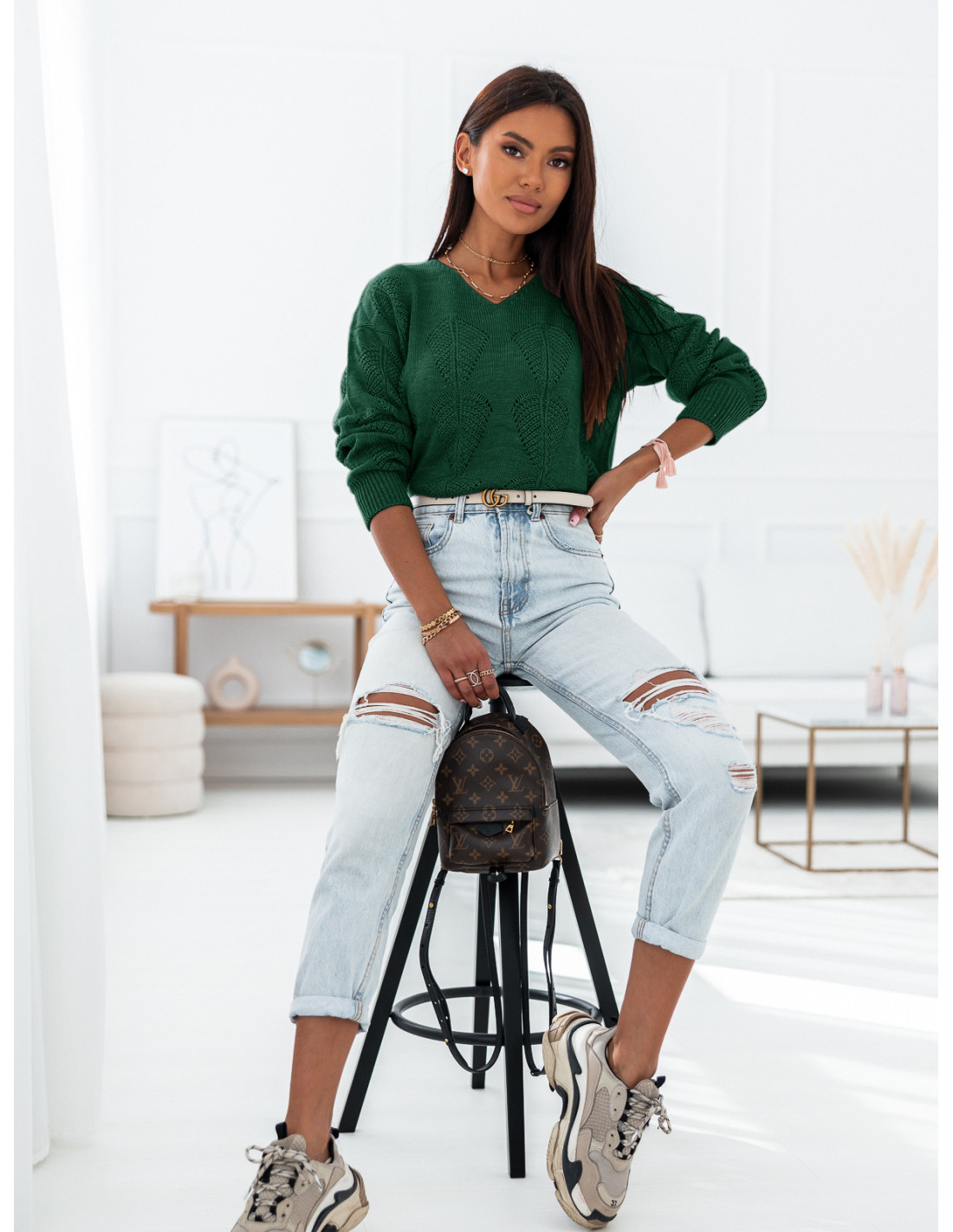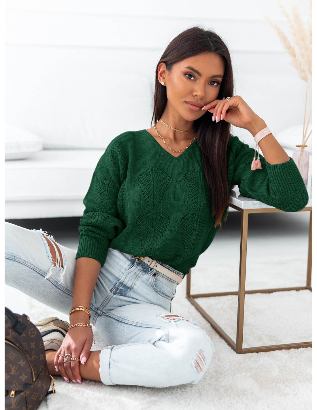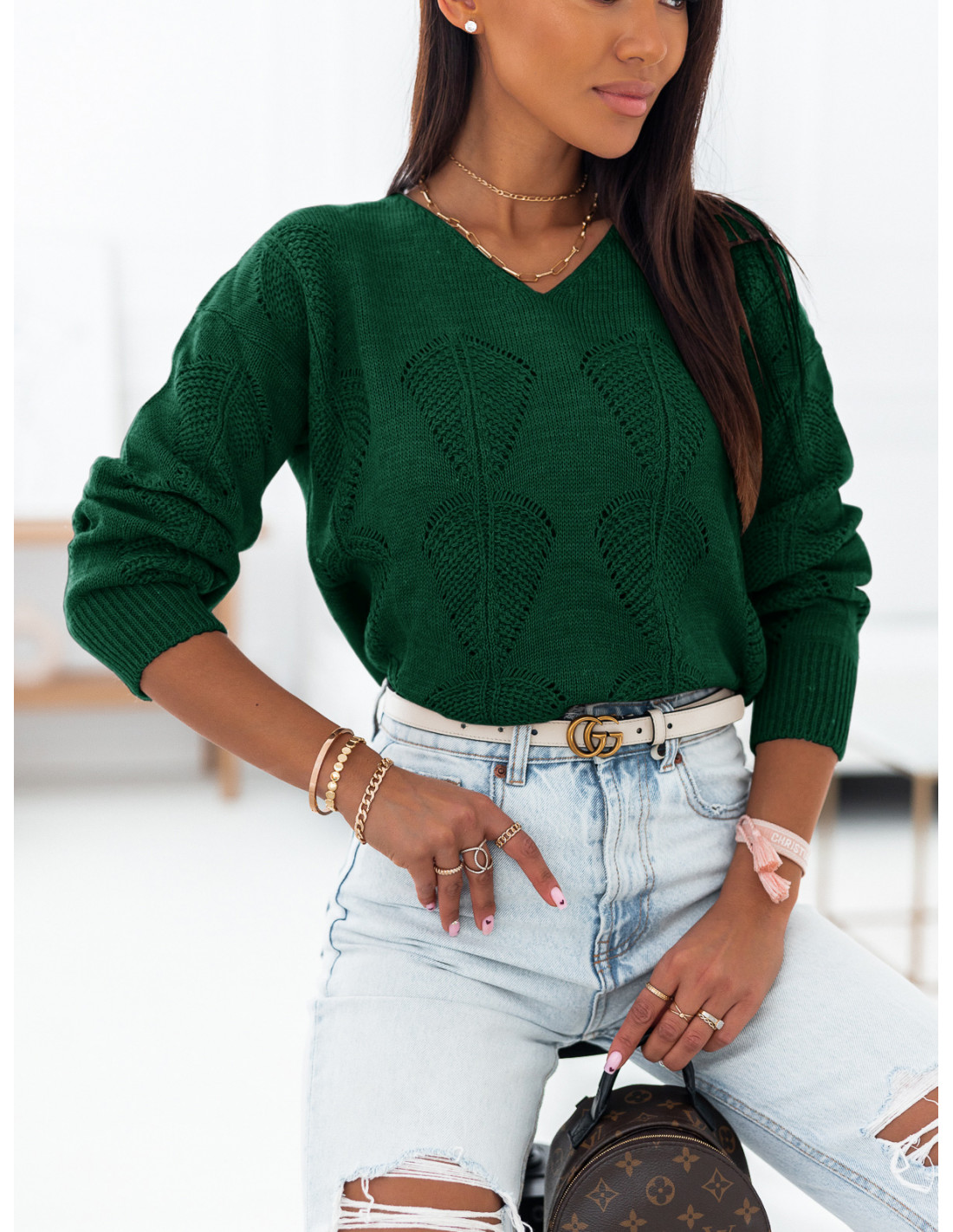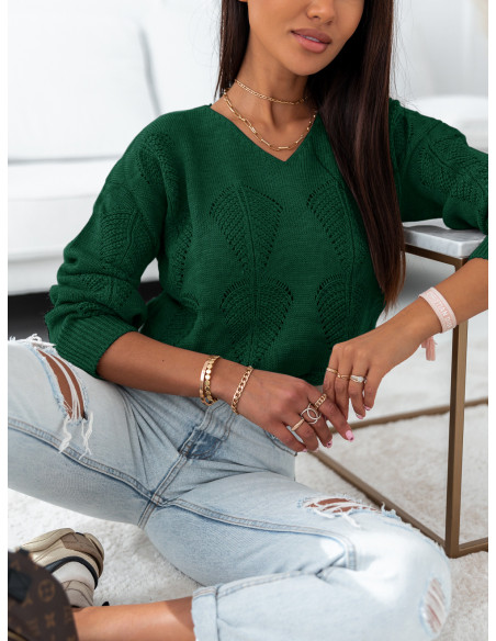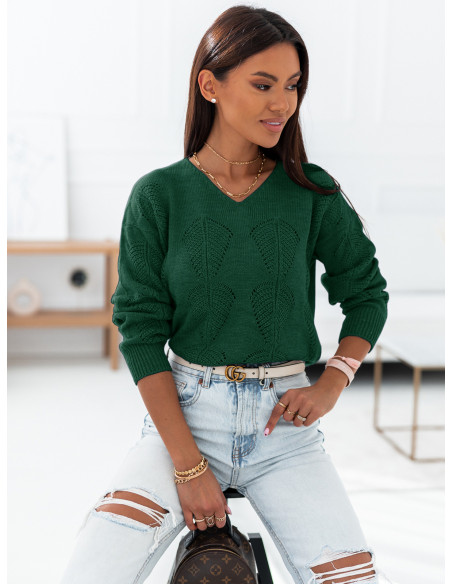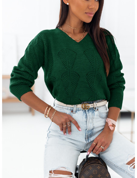 Ażurowy sweter oversize - CHILI - butelkowa zieleń