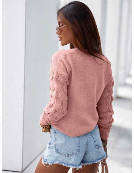Sweter z guzikami i ozdobnym rękawem TRESSI - pudrowy róż