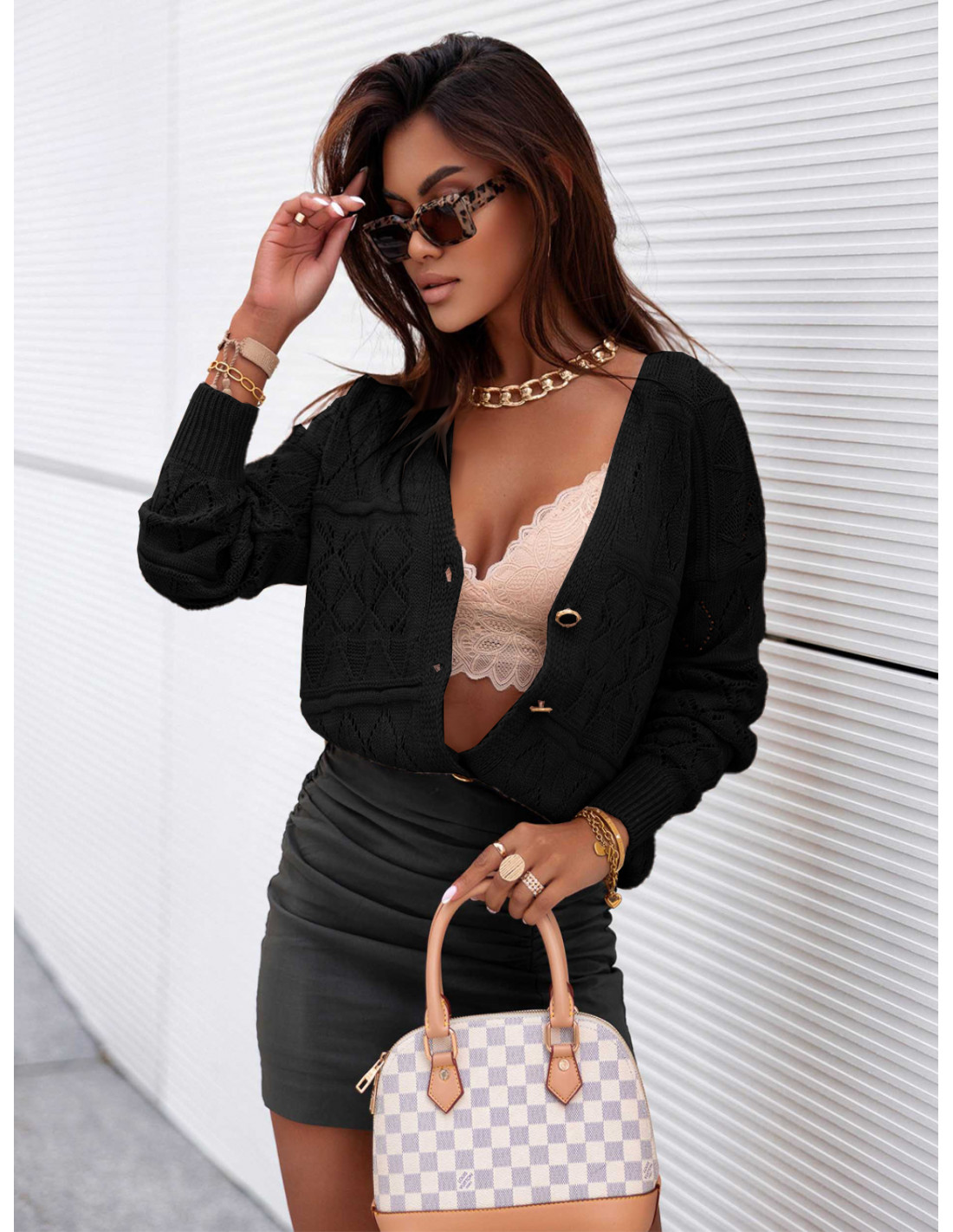 Ażurowy sweter kardigan z guzikami MILI - czarny