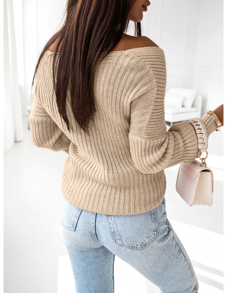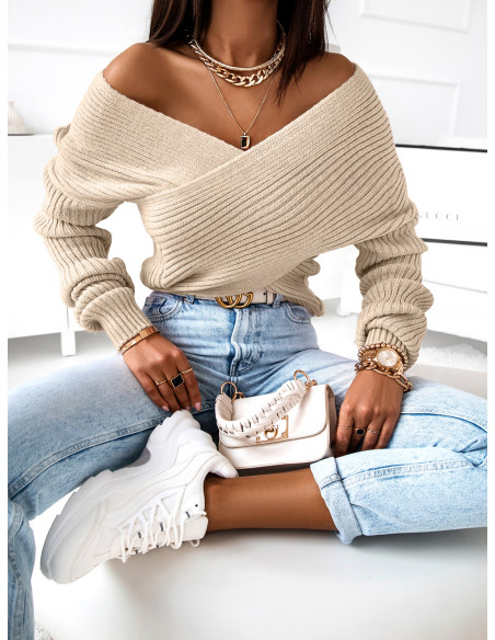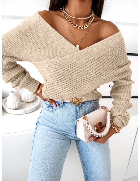 Kobiecy przekładany sweter - RAISA - jasny beż