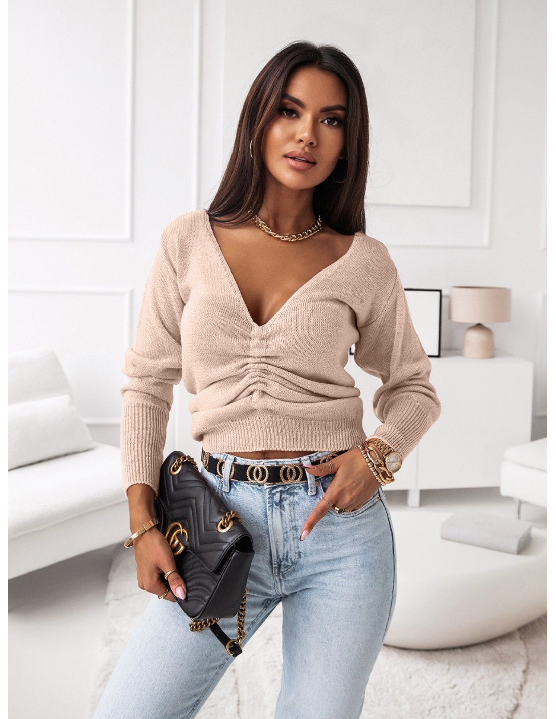 Dzianinowy sweter ze ściągaczem - DANEA - jasny beż