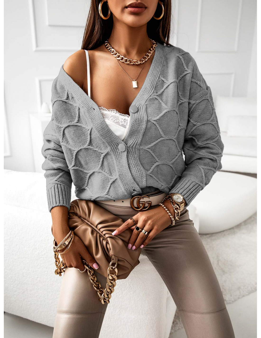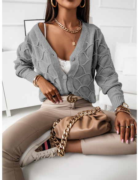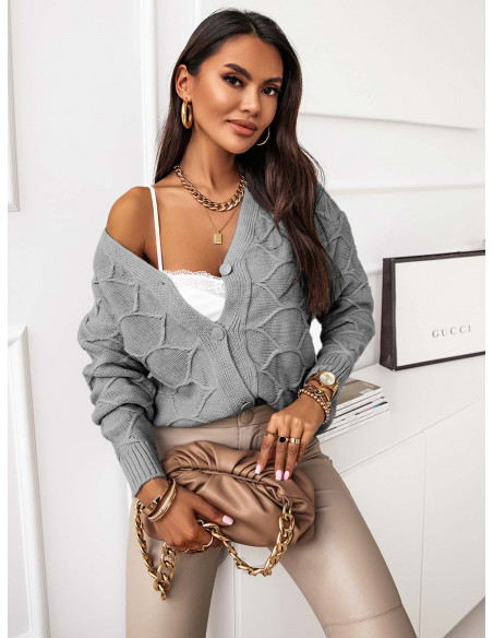 Sweter kardigan z guzikami TICCAL - szary