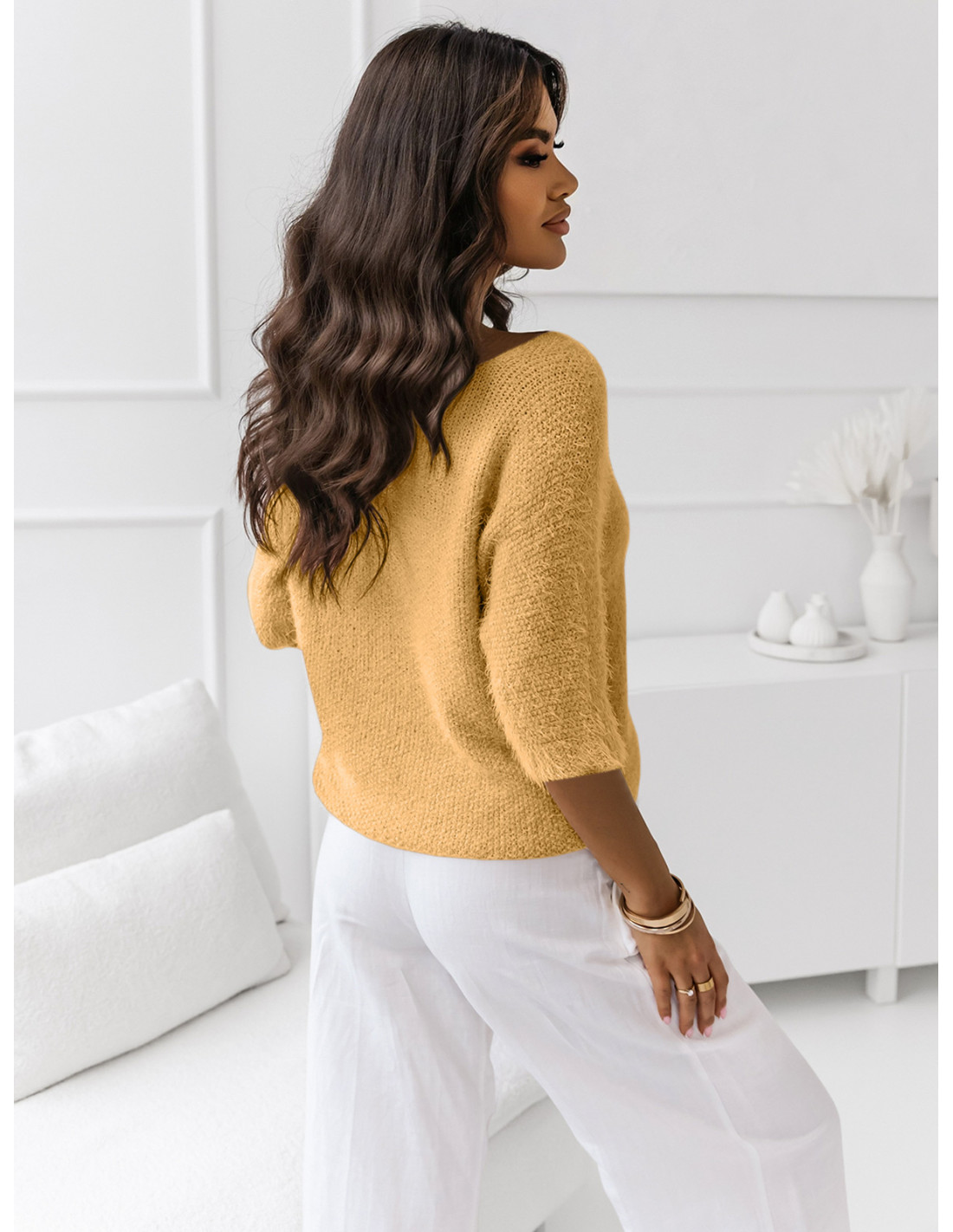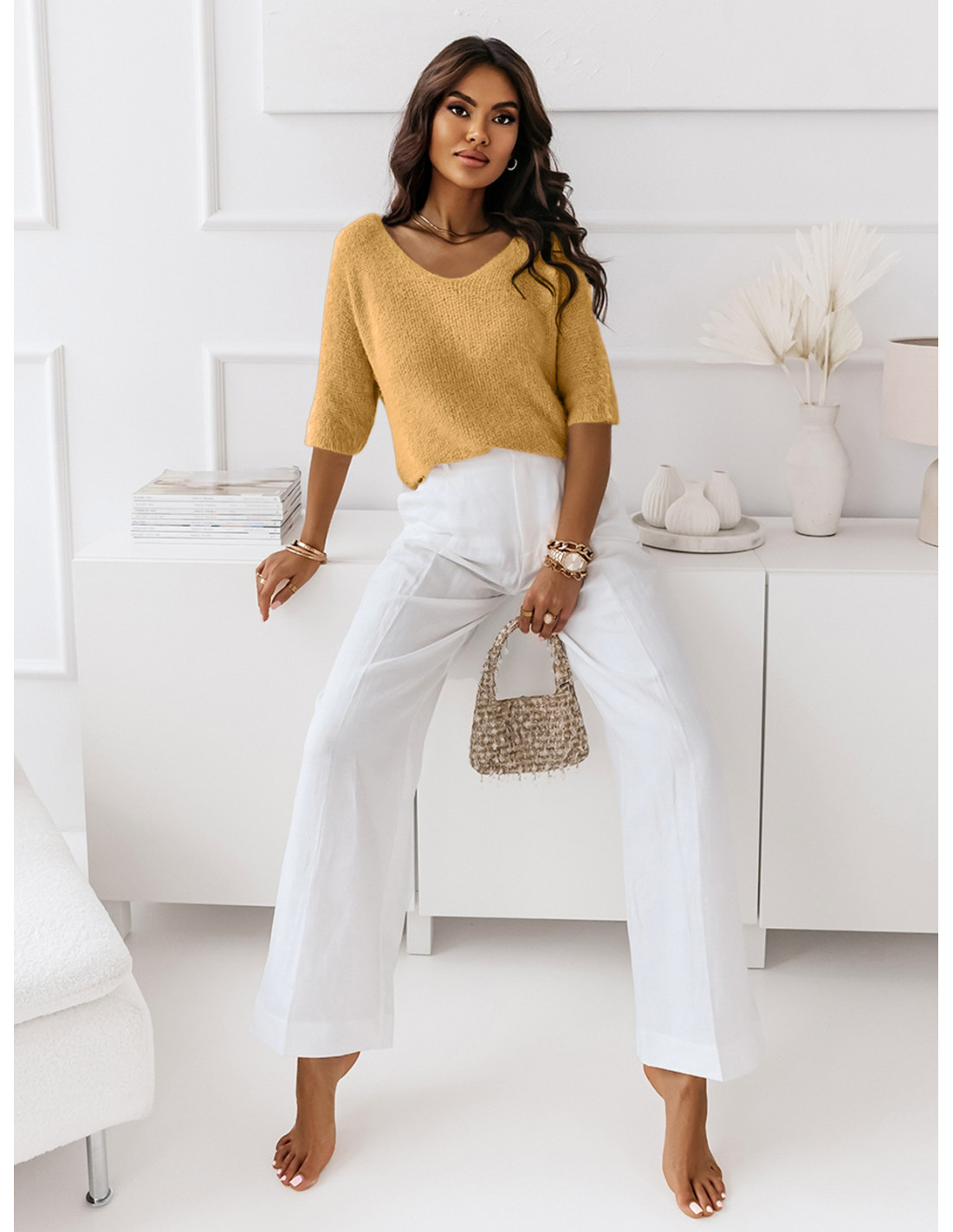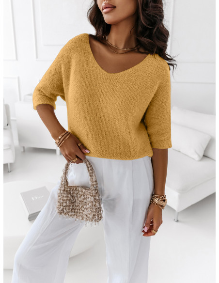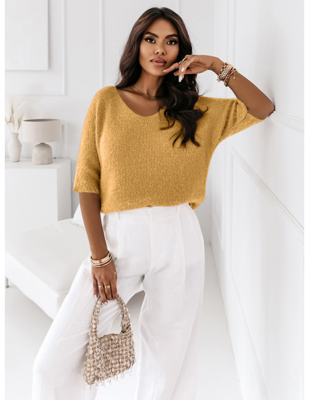 Moherowy sweter z dekoltem w serek - JASMIN - musztardowy