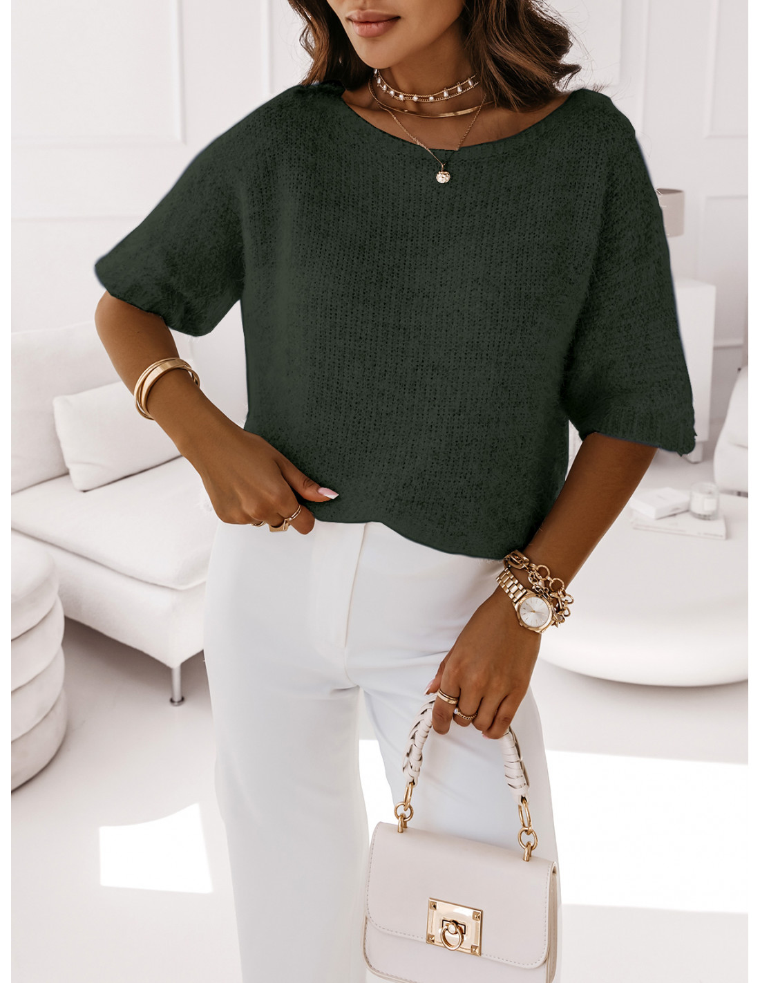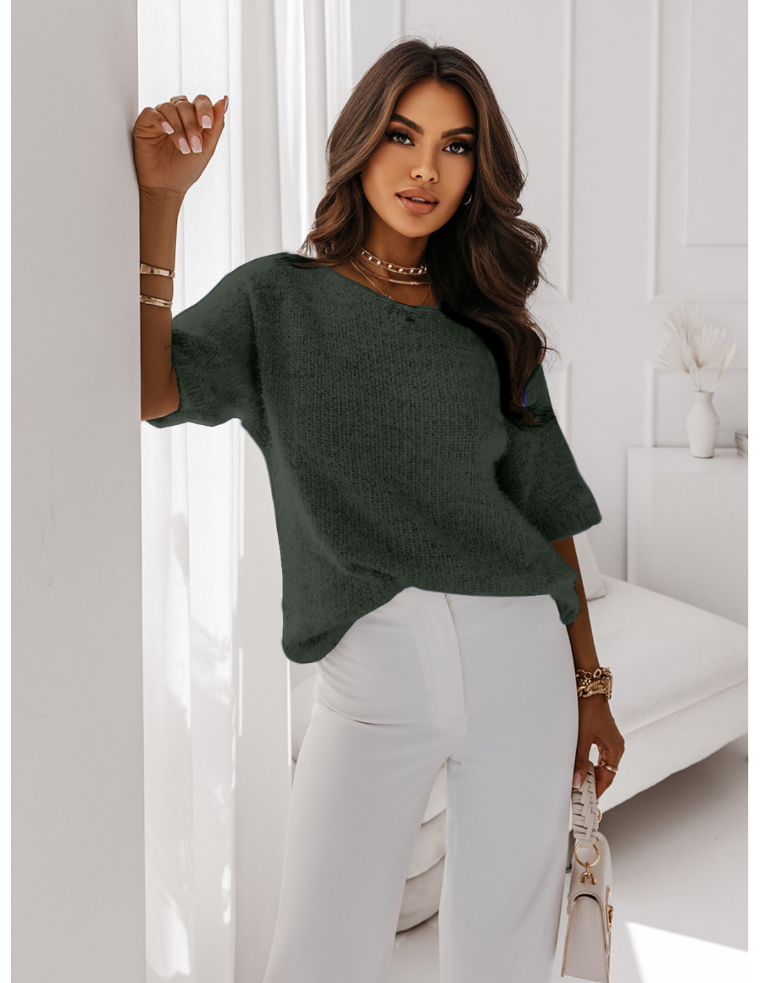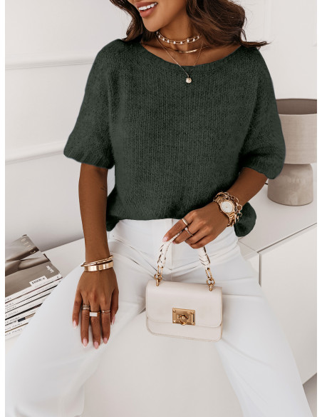 Moherowy sweter z dekoltem w łódkę BATUR - khaki
