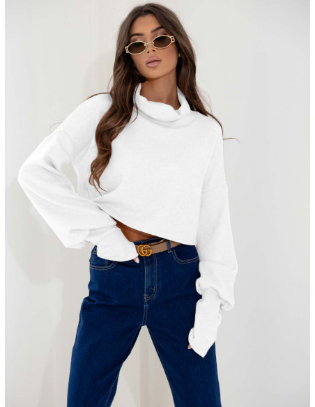 Dzianinowy sweter z golfem oversize NUALA - biały