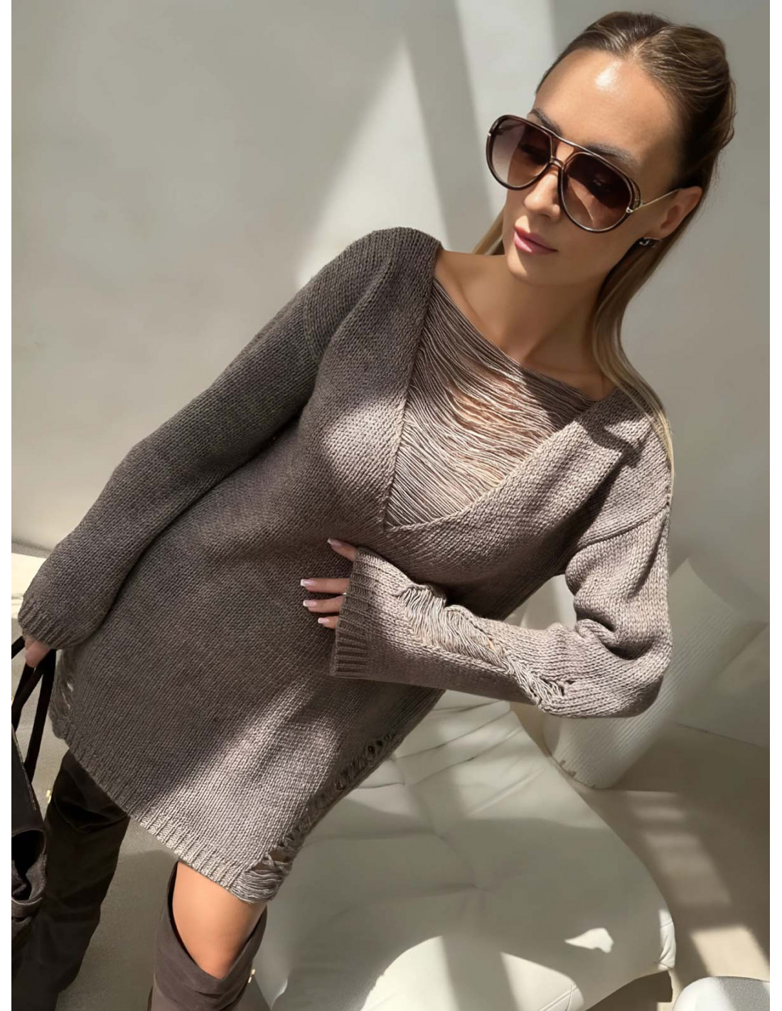 Wełniany długi sweter z rozcięciami DIEDRE - cappuccino