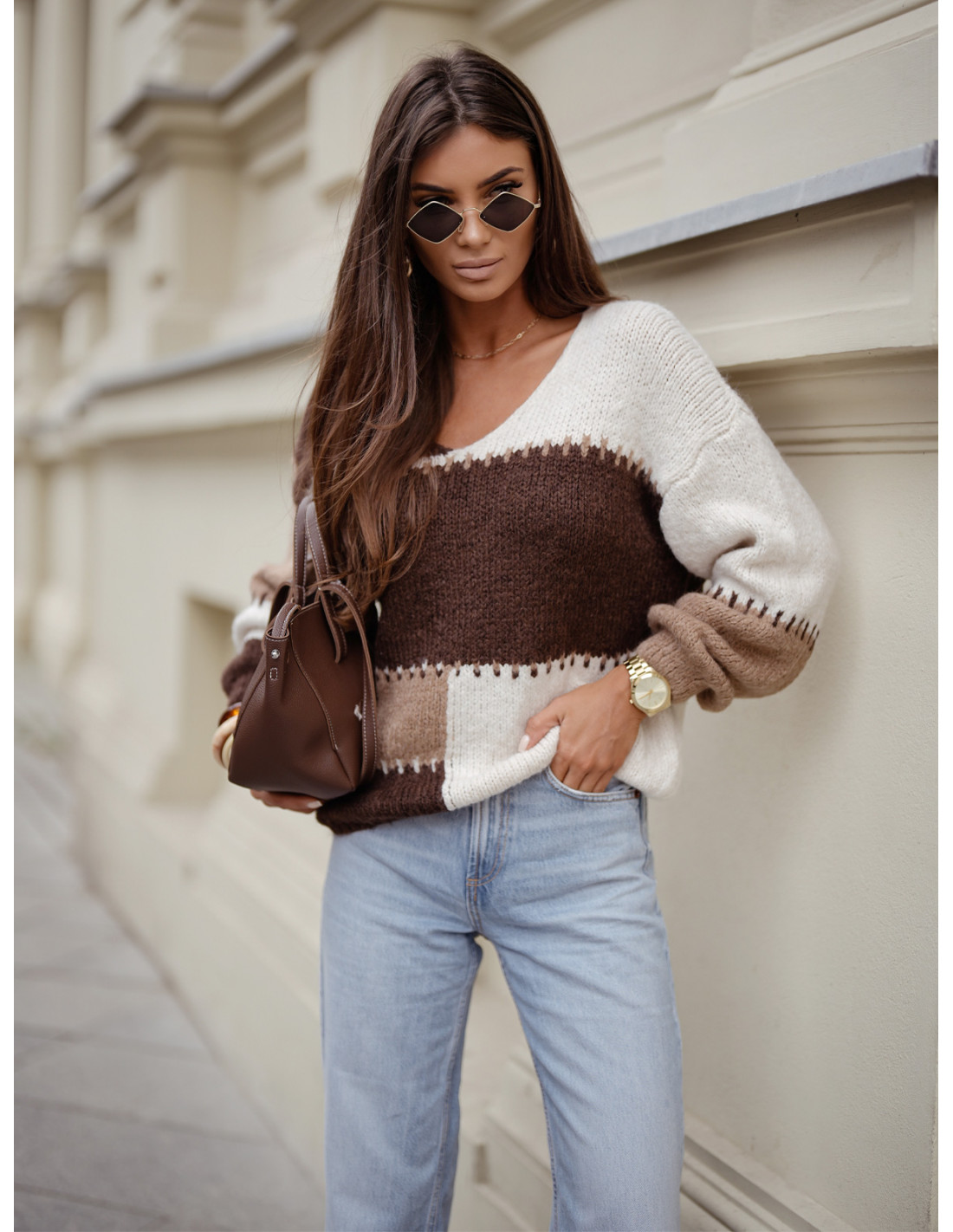 Oversizowy sweter ze ściągaczem CIERRA - wzór 1