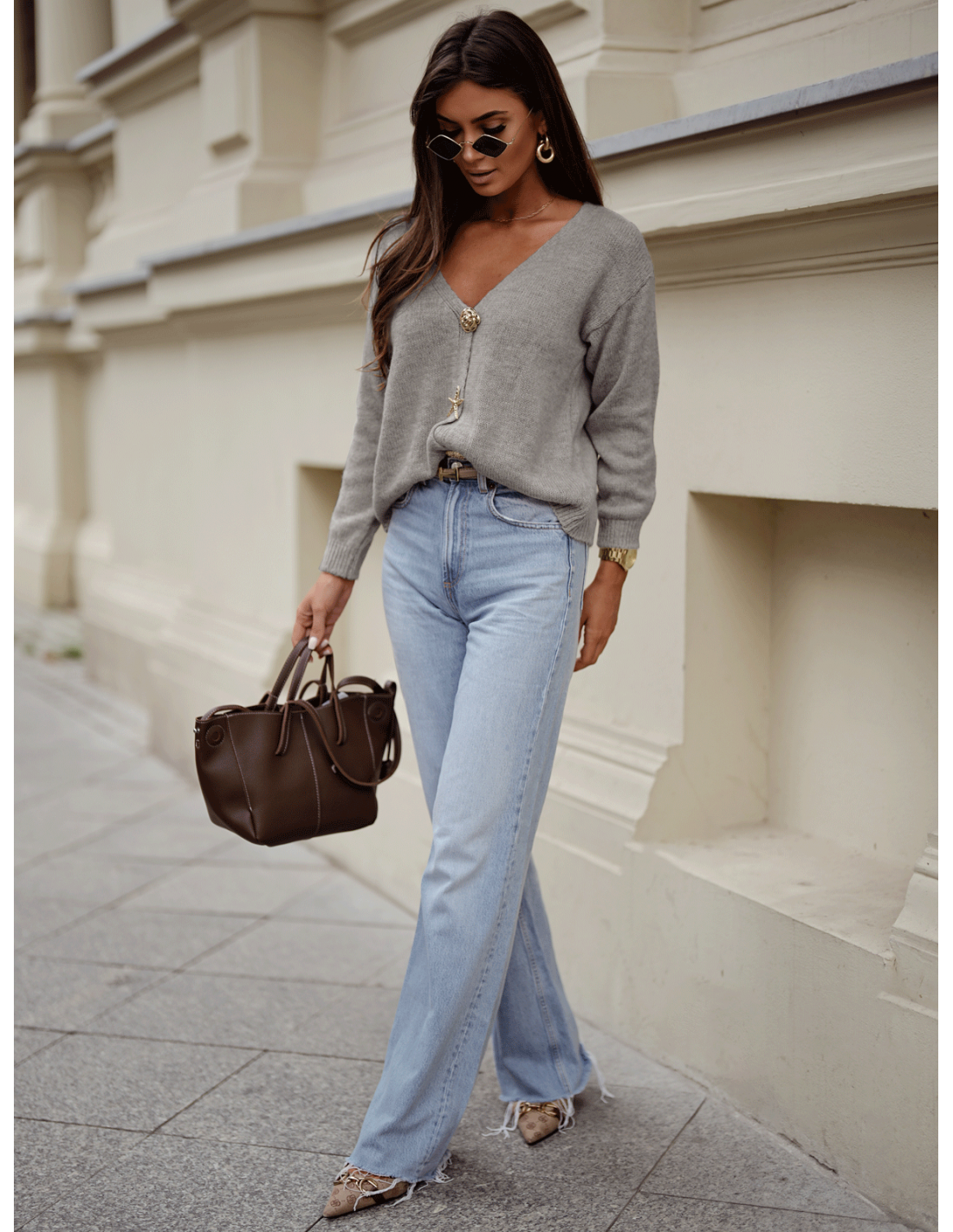 Sweter kardigan z ozdobnymi guzikami SASKIA - szary