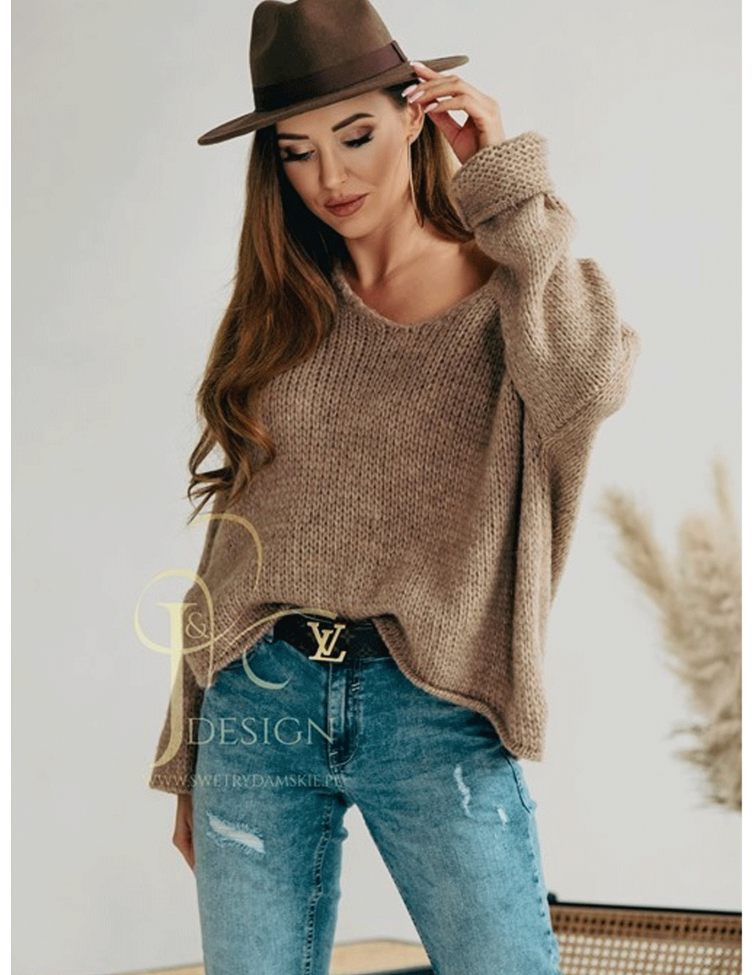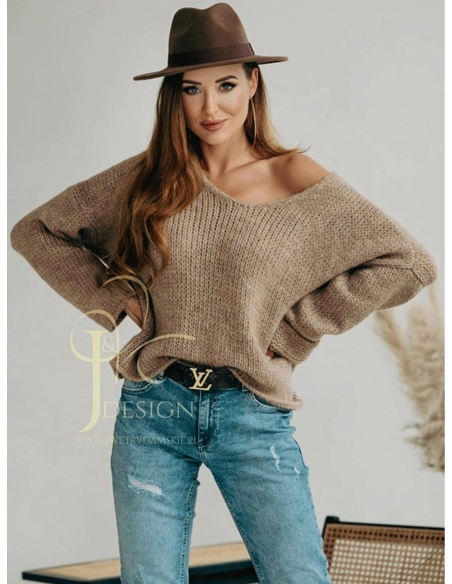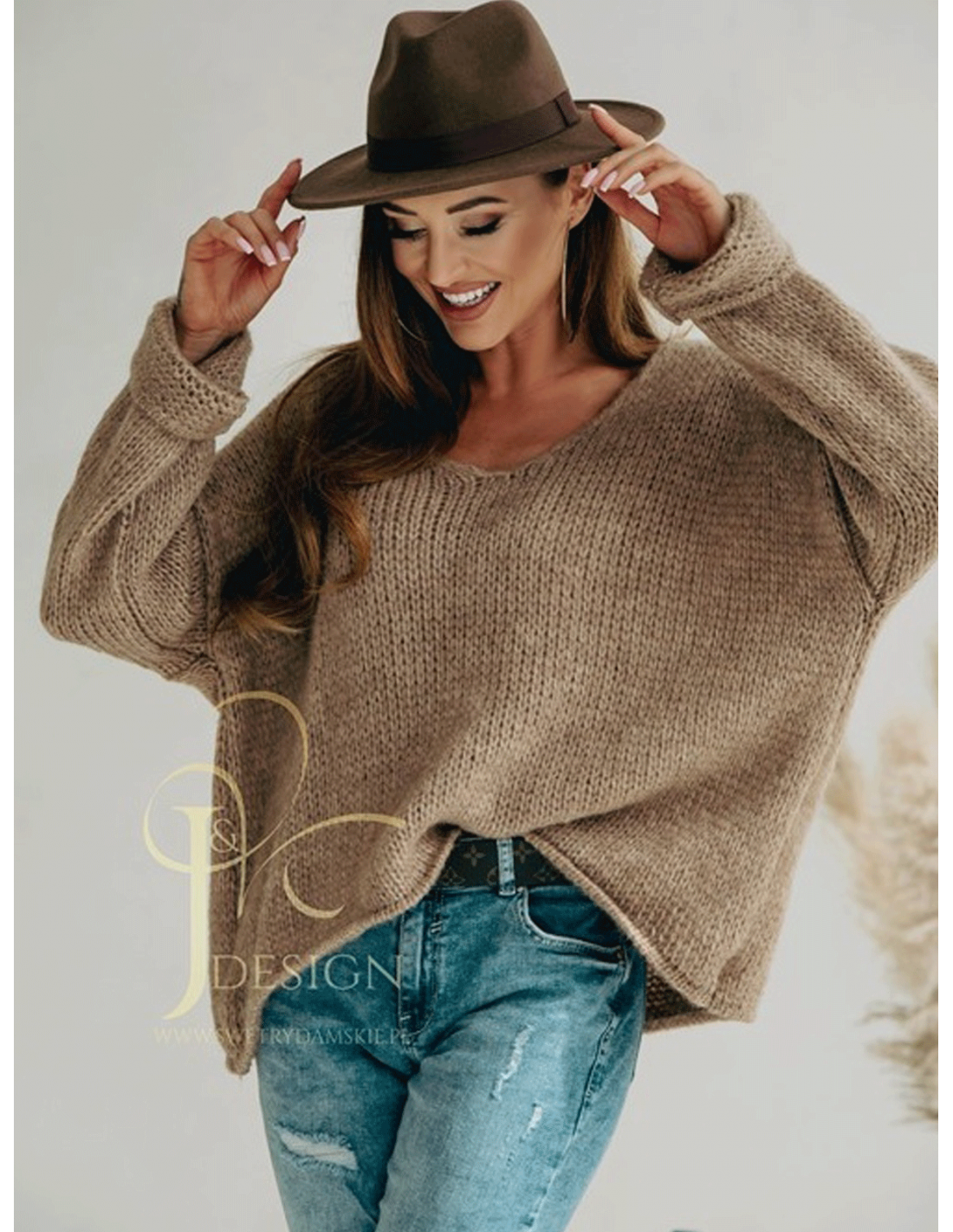 Sweter oversize z domieszką wełny PEDRO - cappuccino
