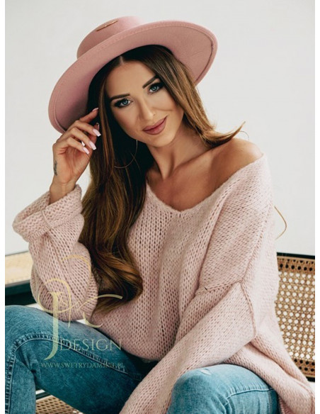 Sweter oversize w kolorze pudrowy róż komfort i styl w jednym.