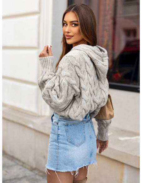 Sweter z kapturem w warkocze ROCCO - szary