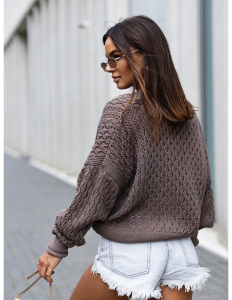Czekoladowy pleciony kardigan to Twój niezawodny wybór na jesienne spacery, kawę w mieście i luźne spotkania z przyjaciółmi.