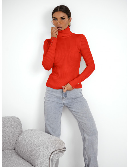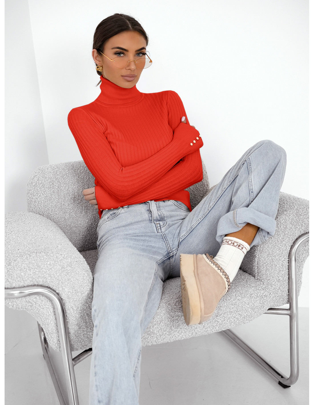 Golf w kolorze koralowej czerwieni to synonim wygody, stylu i kobiecości w jednym.