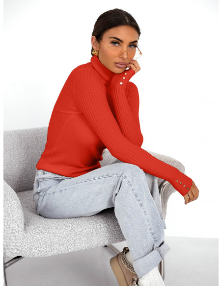 Prążkowany sweter golf z wiskozą TORIA - czerwony