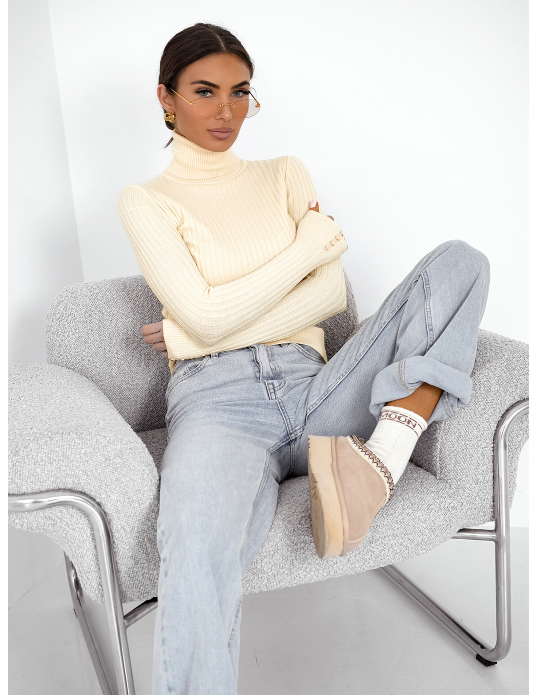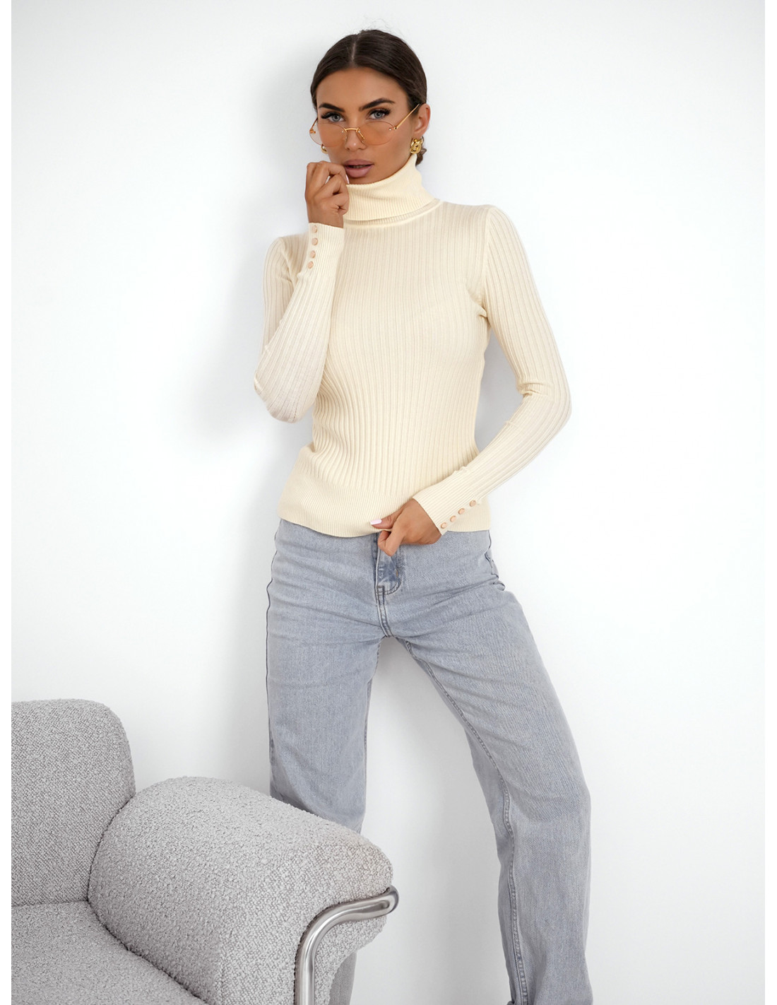 Prążkowany sweter golf z wiskozą TORIA - waniliowy
