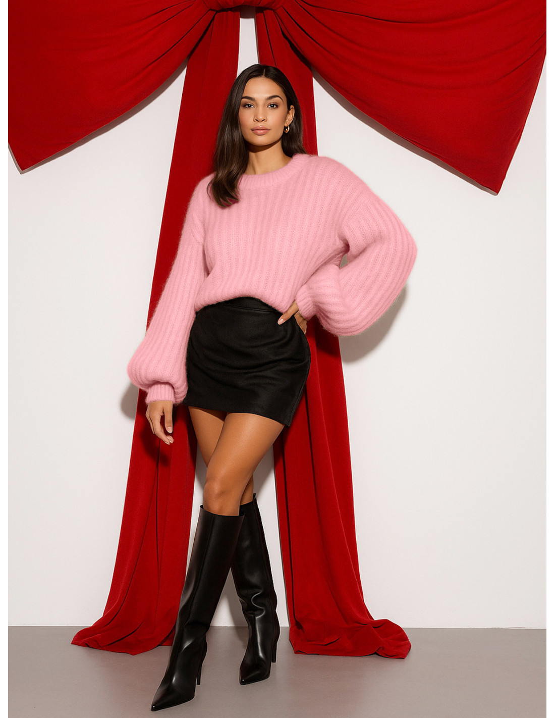 To idealny sweter na chłodniejsze dni — lekki, ciepły i niezwykle kobiecy.