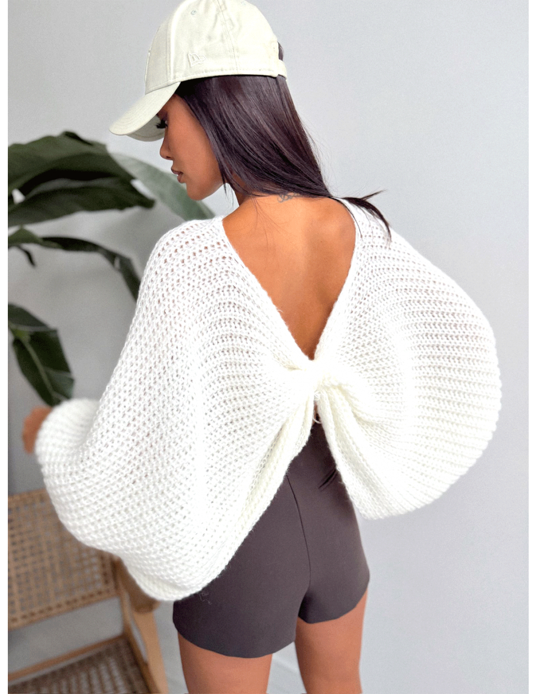 Sweter oversize z marszczonym tyłem KADAR - biały