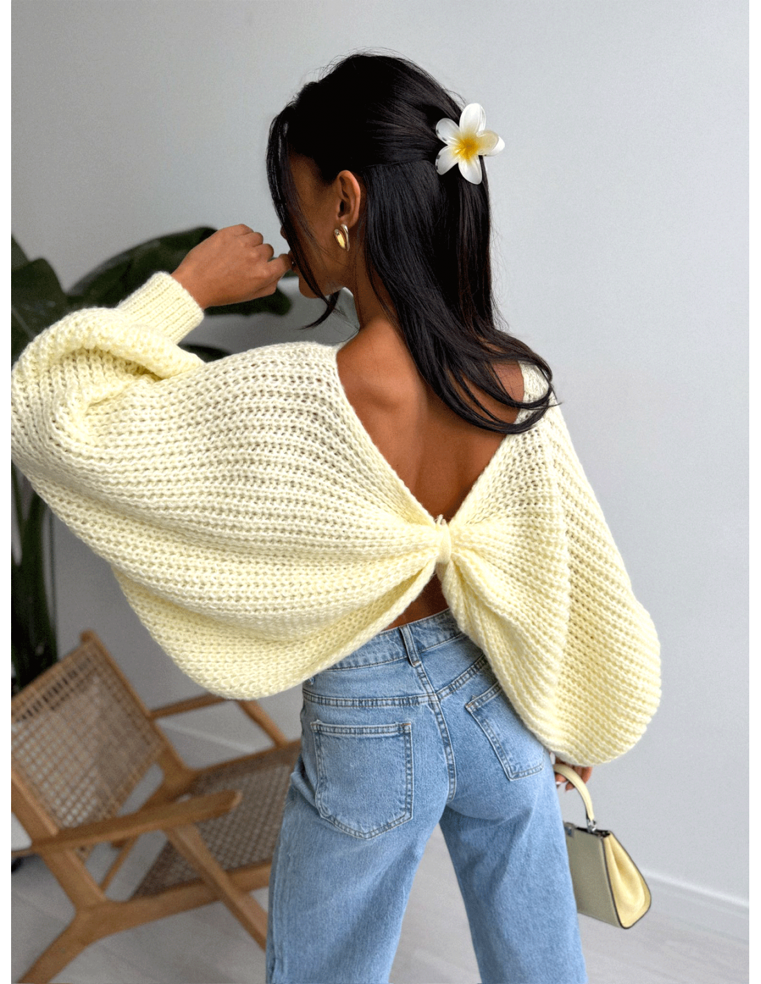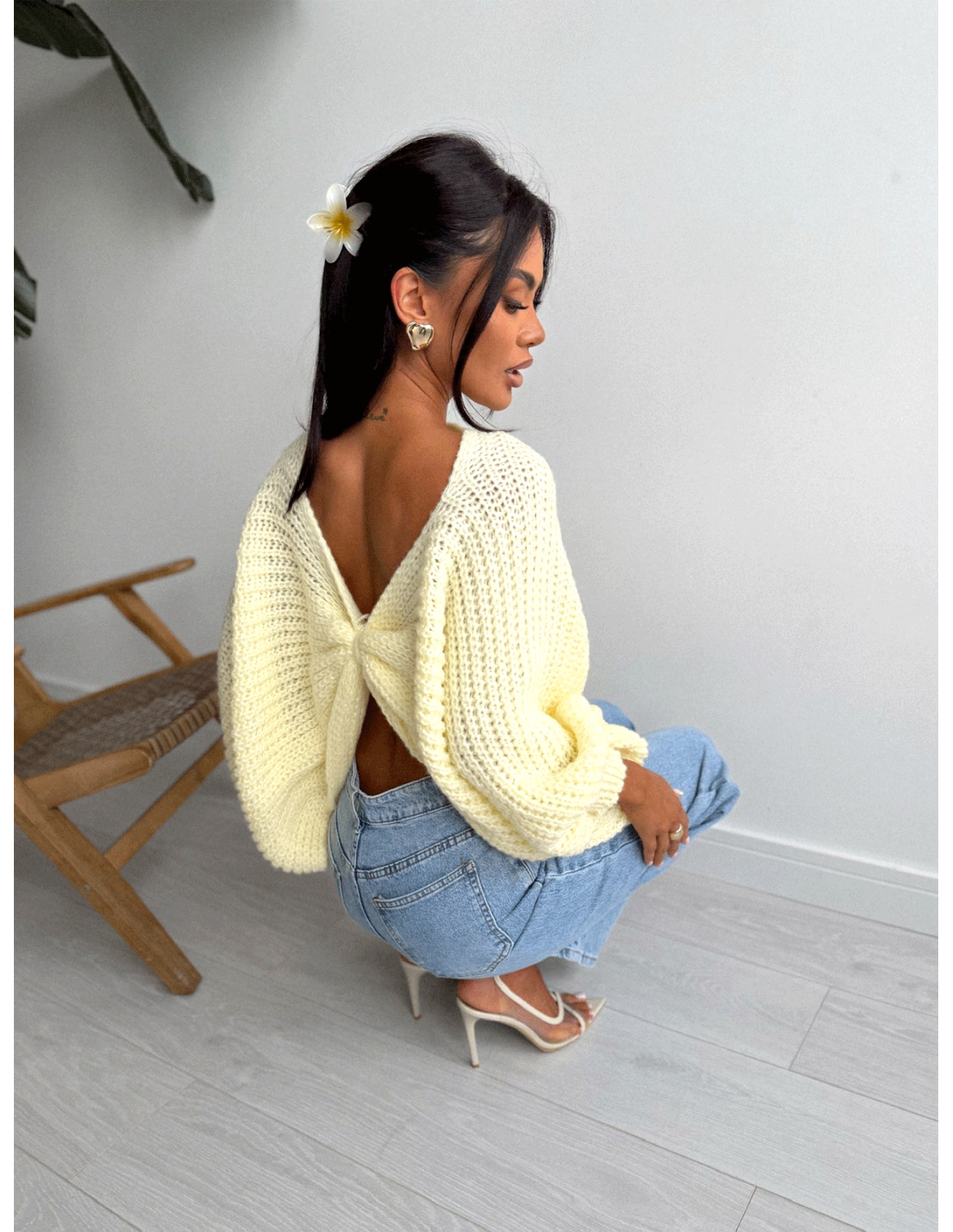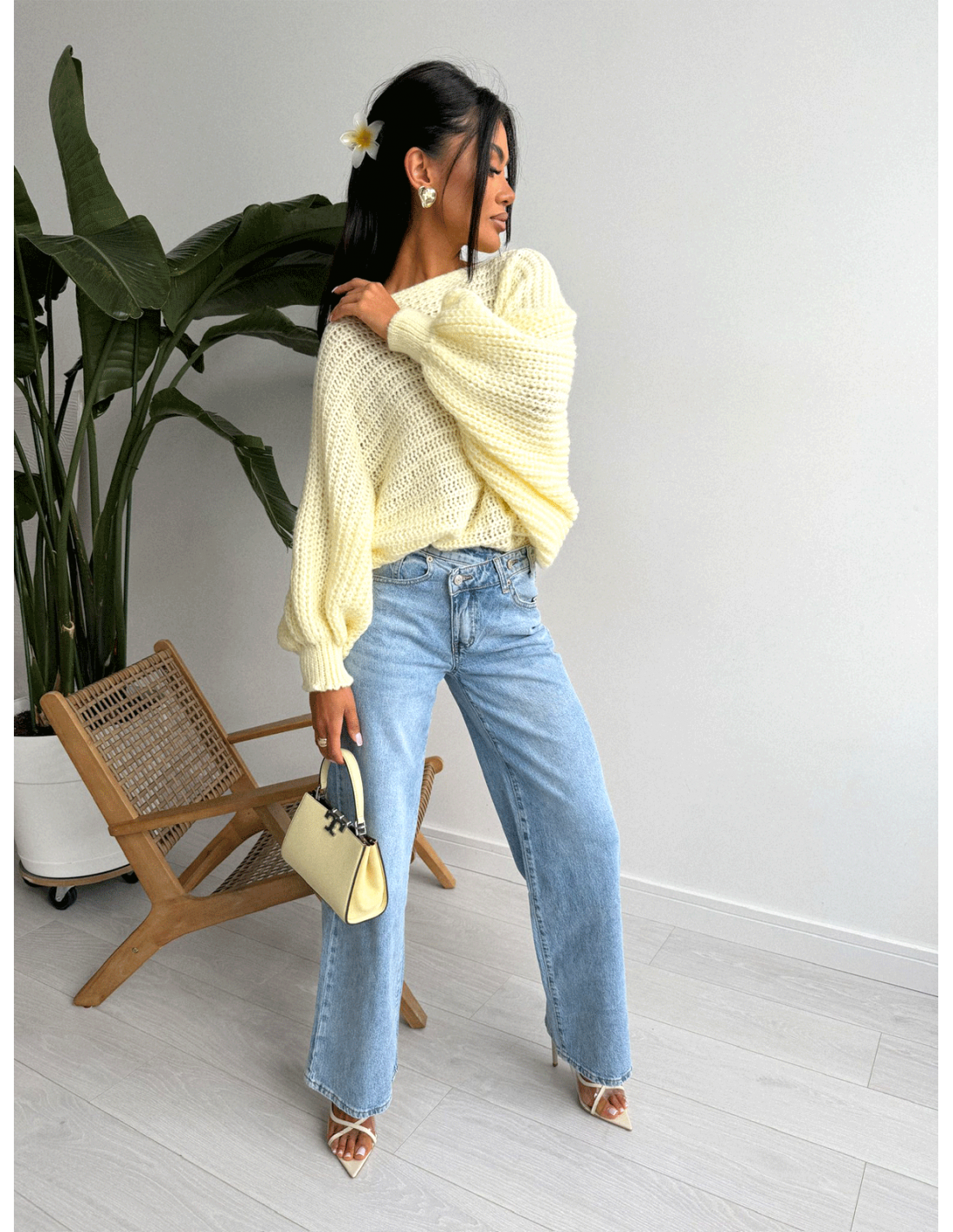 Cytrynowy sweter robi całą stylizację sam – wystarczy dodać ulubione dodatki i gotowe.