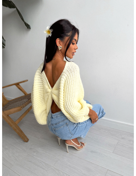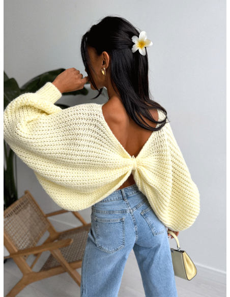 Sweter oversize z marszczonym tyłem KADAR - cytrynowy